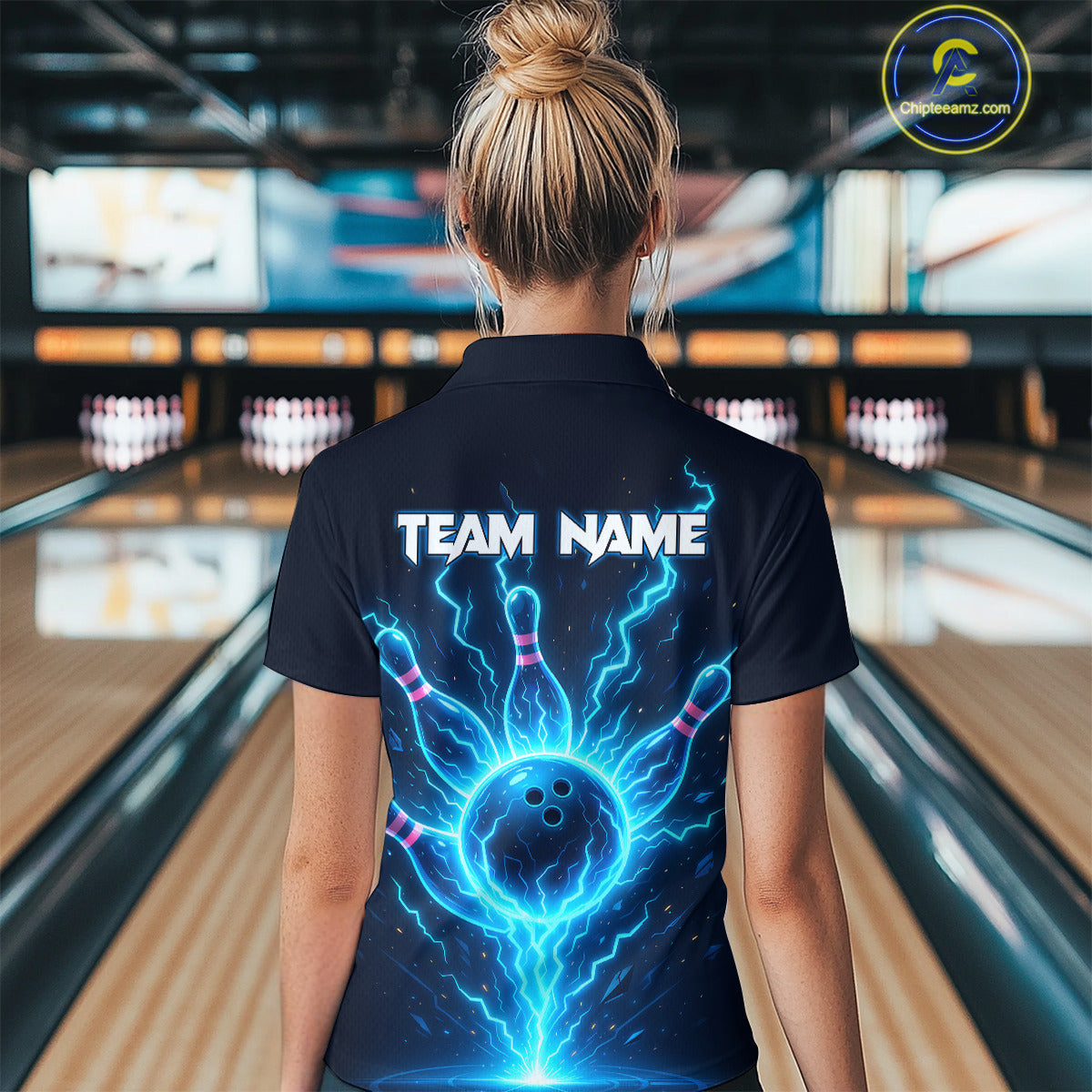 Blue Lightning Thunder Bowling Polo, Quarter Zip Shirts for Women Custom Team Bowling Shirts NQS10520