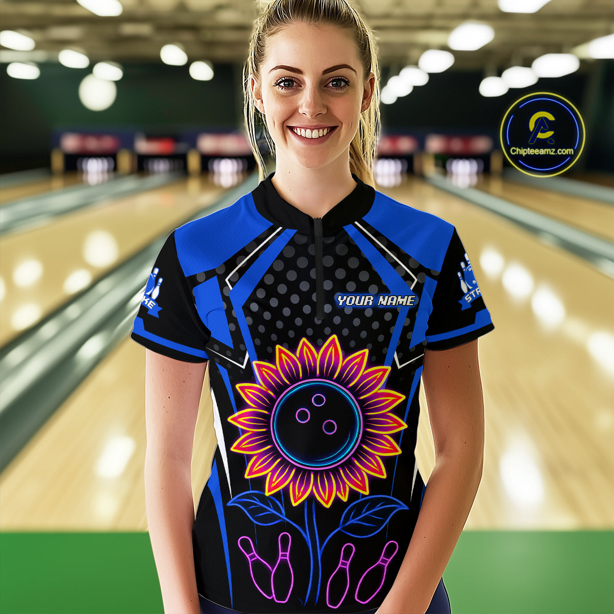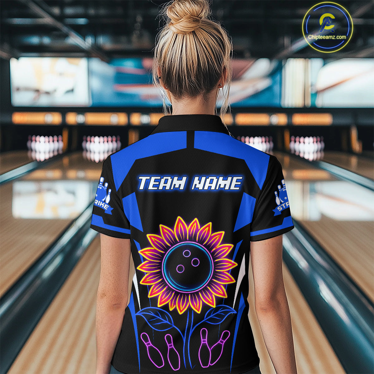 Blue Neon Lightning Sunflower Bowling Shirt for Women Custom Team Bowling Polo Bowling Jersey QZT771