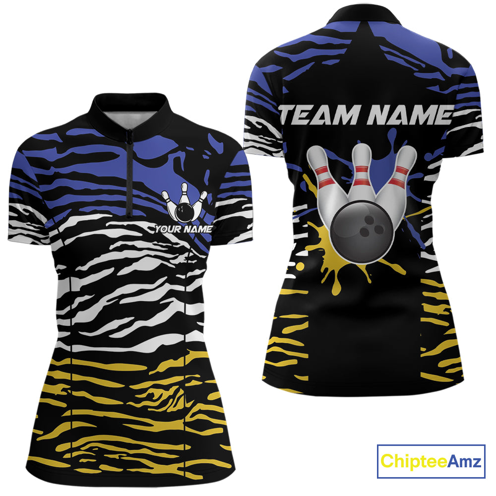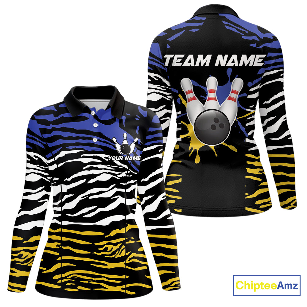 Blue, Yellow and White Tiger Skin Pattern Bowling Shirts For Women Custom Bowling Team jerseys NQS9803