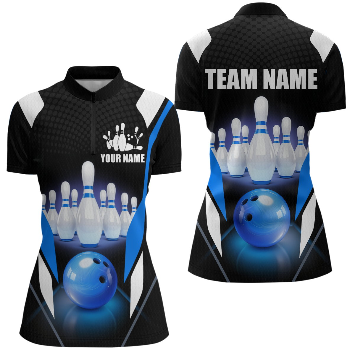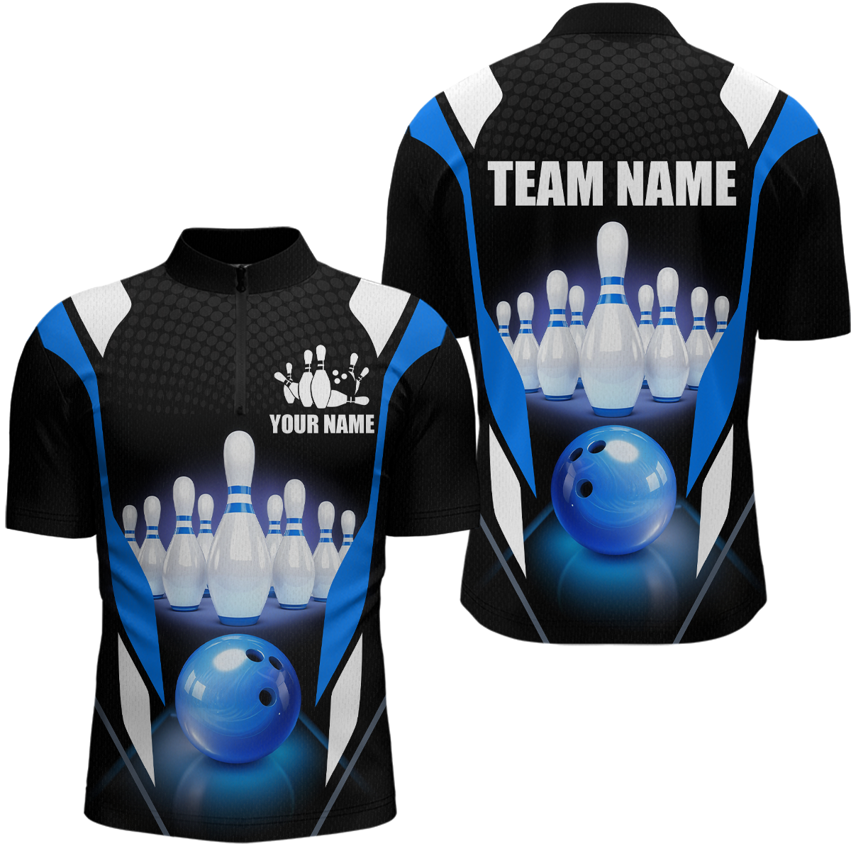 Blue Bowling Shirt for Men and Women Bowling Jersey with Team Bowling Polo & 1/4 Zip MBL42