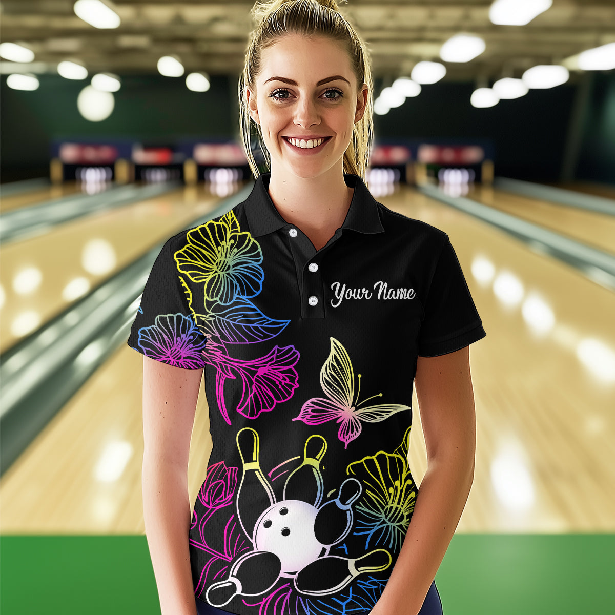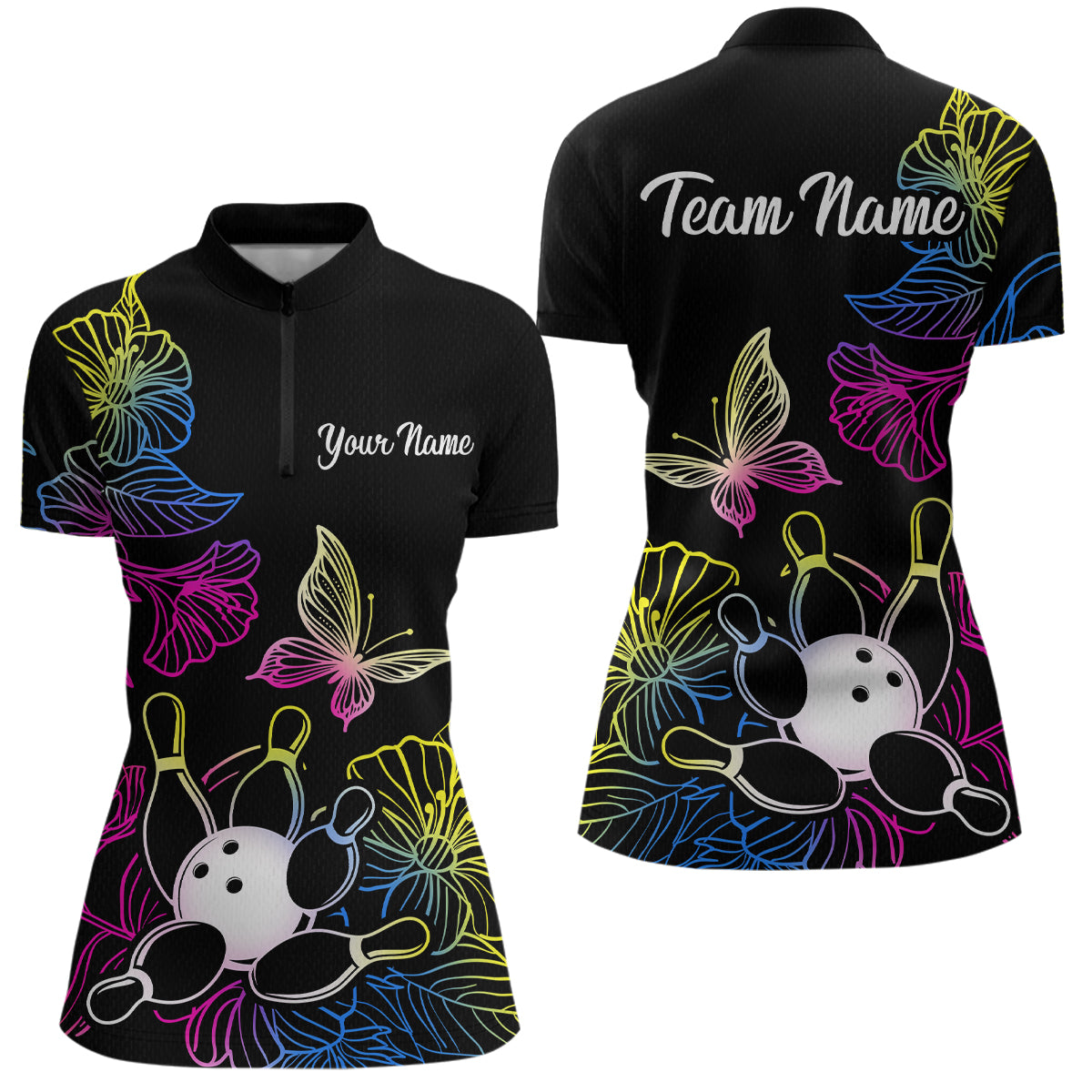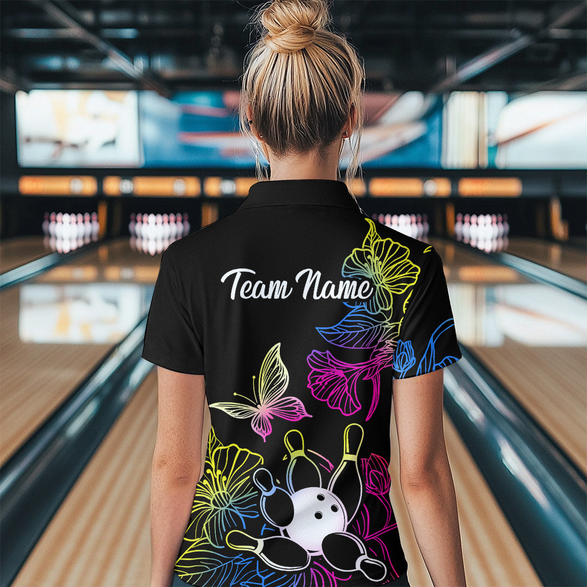 Colorful Butterflies Bowling Shirt for Women Bowling Team Jersey Shirts Polo & Quarter-Zip HNT27