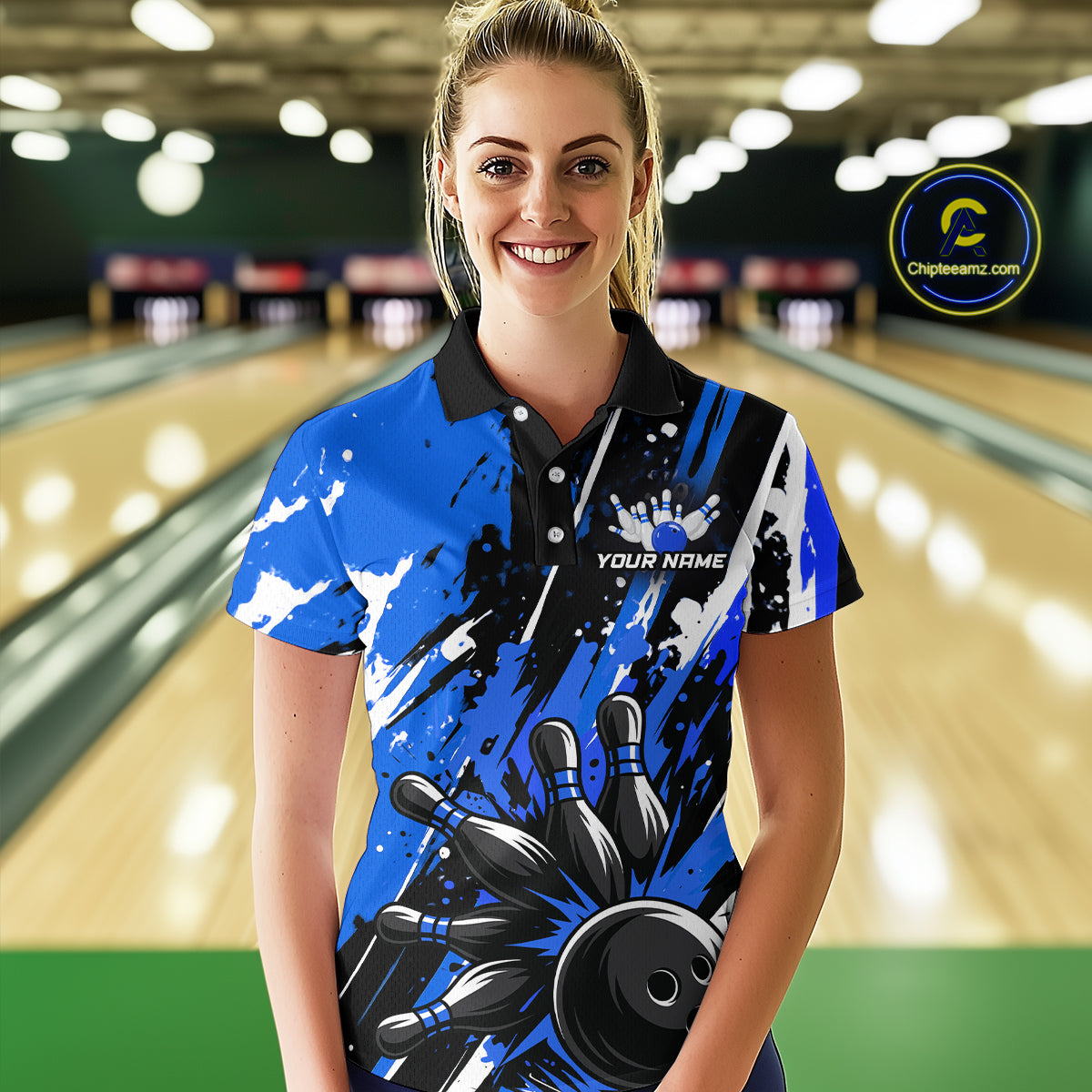 Custom Blue Bowling Jersey for Women Bowling Uniform Polo & 1/4 Zip Bowling Team Shirts HNT105