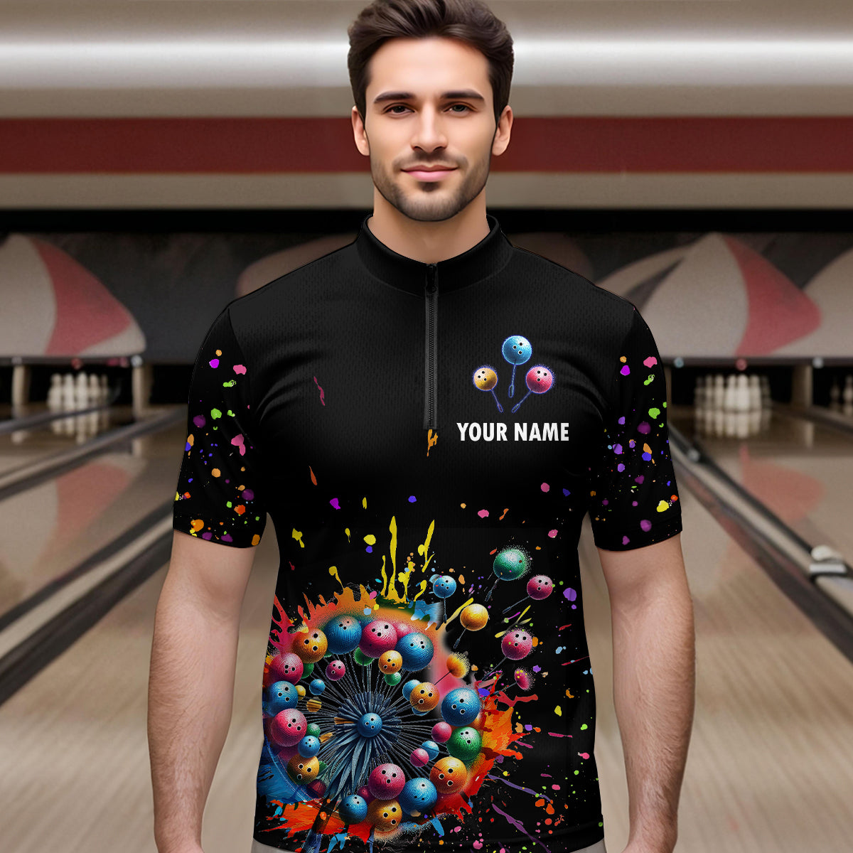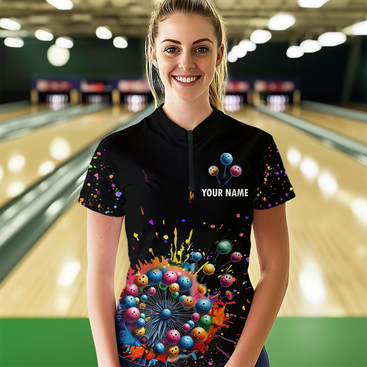 Custom Colorful Dandelion Bowling Shirt Bowling Team Jersey Quarter-Zip Bowling Performance QZT672