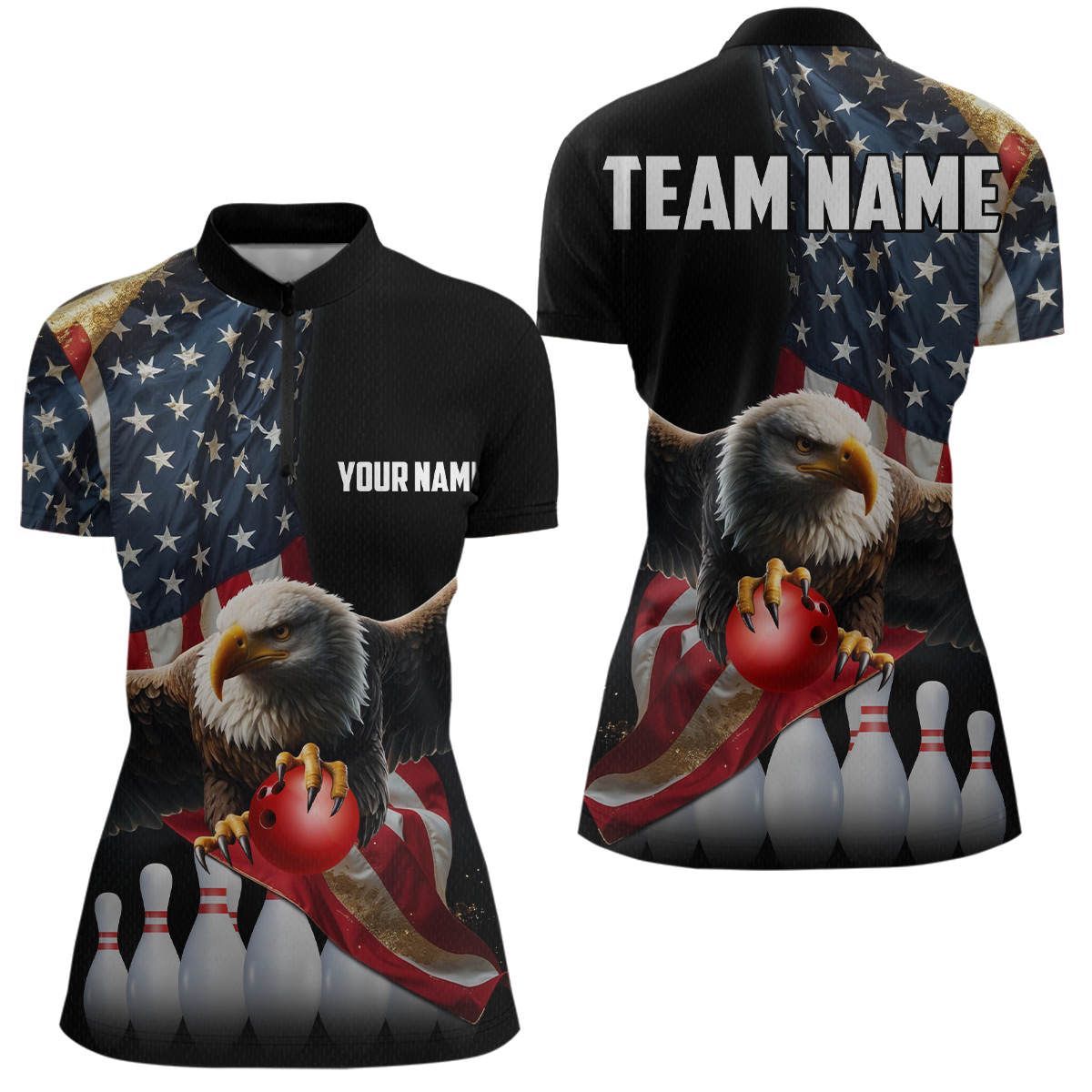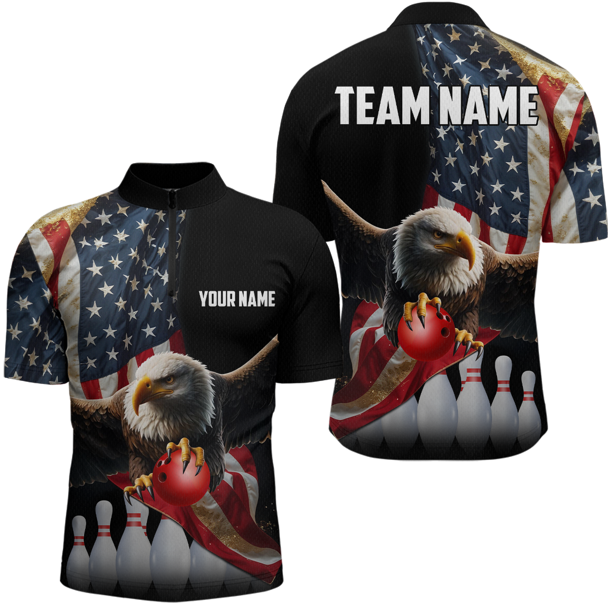 Custom Eagle Bowling Team Jersey American Bowling Quartar-Zip Shirt for Men Women QZT636