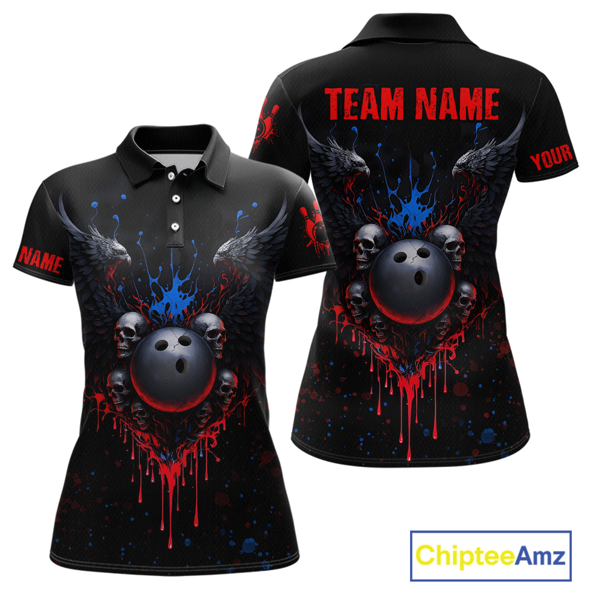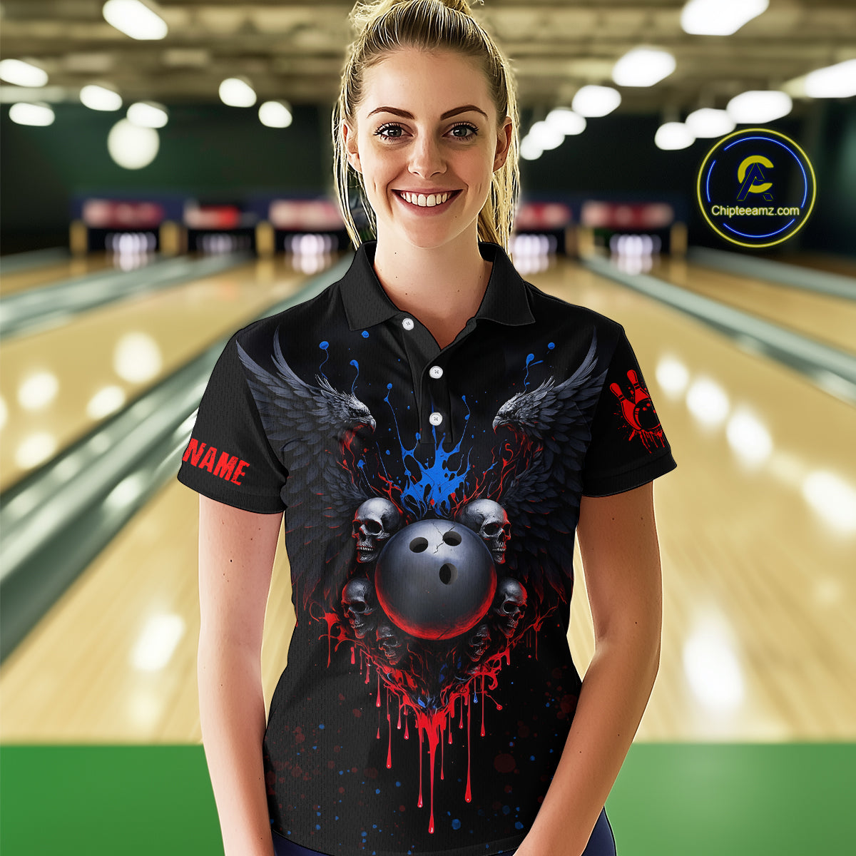 Custom Eagle Skull Bowling Women Shirts Bowling Uniform Polo & 1/4 Zip Bowling Team Jerseys HNT102