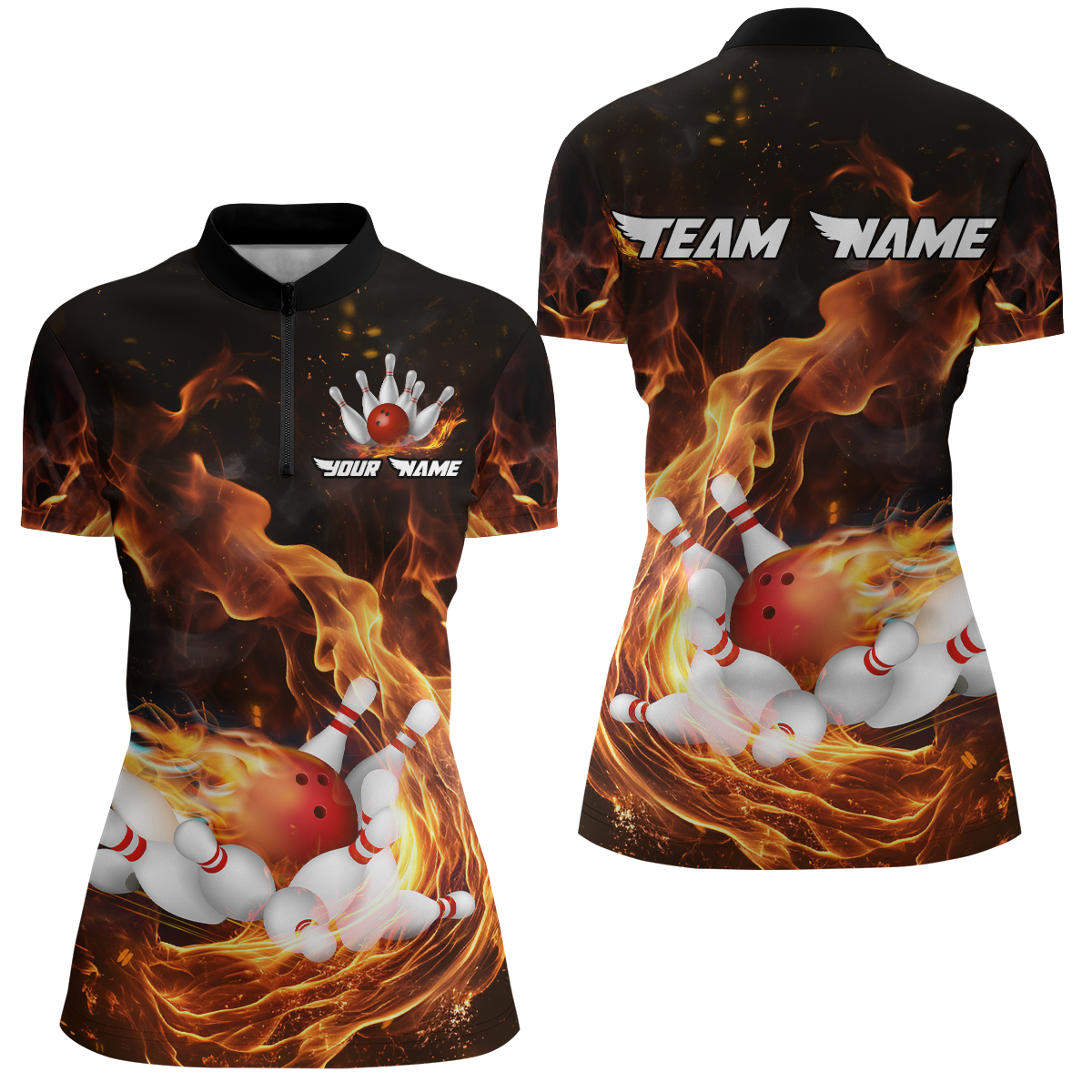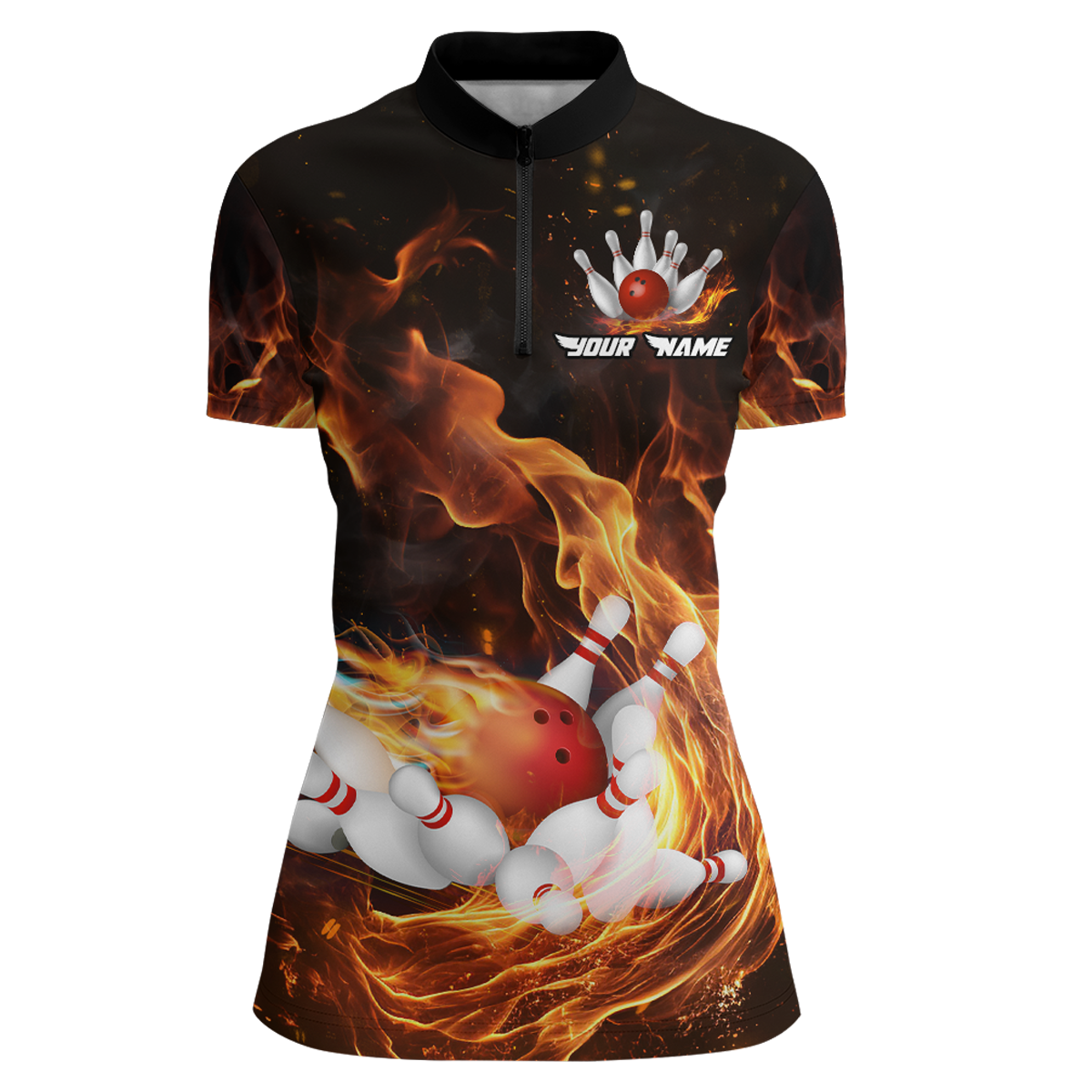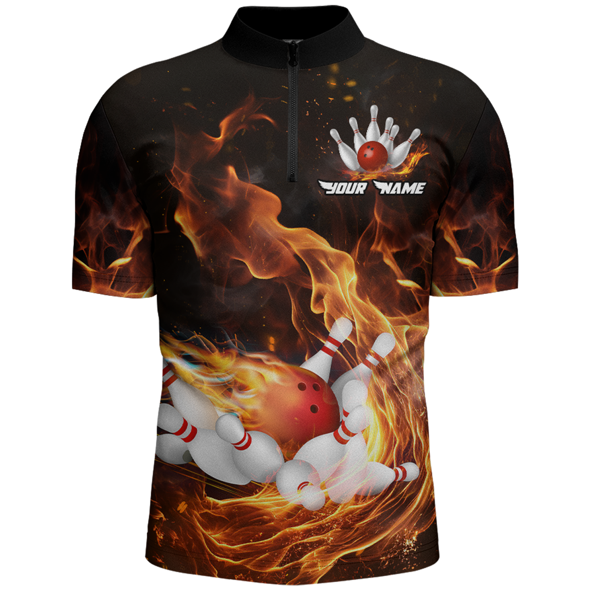 Custom Flame Bowling Jersey For Men Bowling Shirt Team Bowling Quarter-Zip Shirt CP10