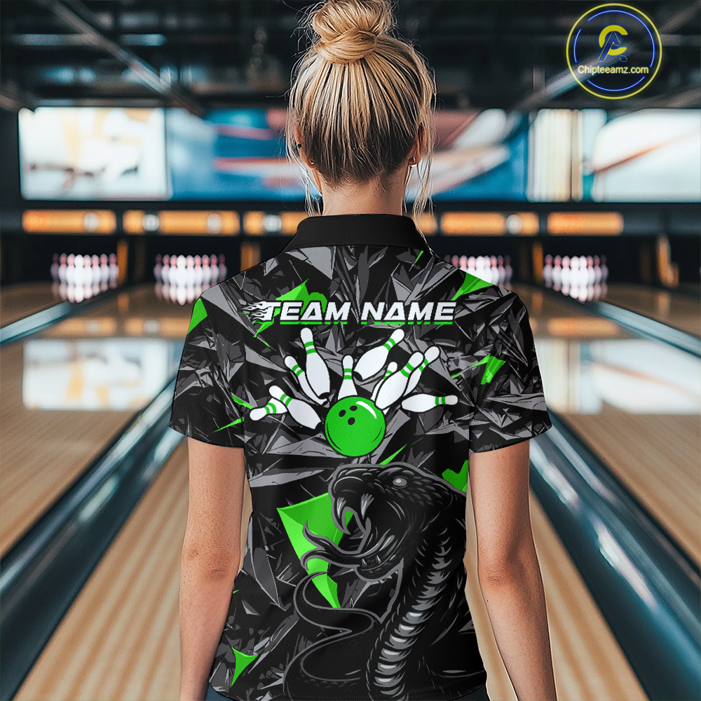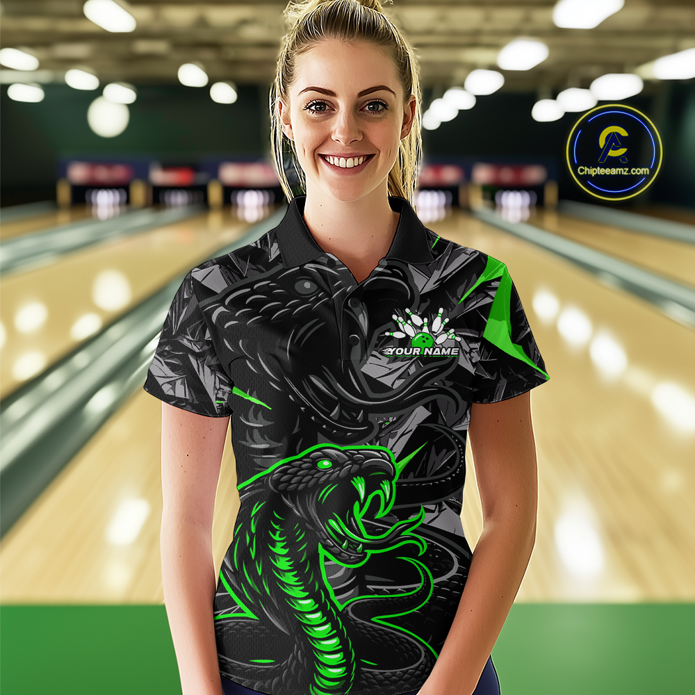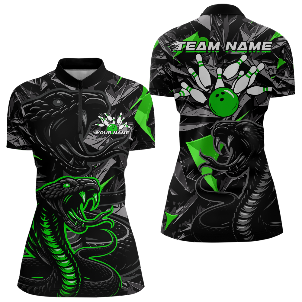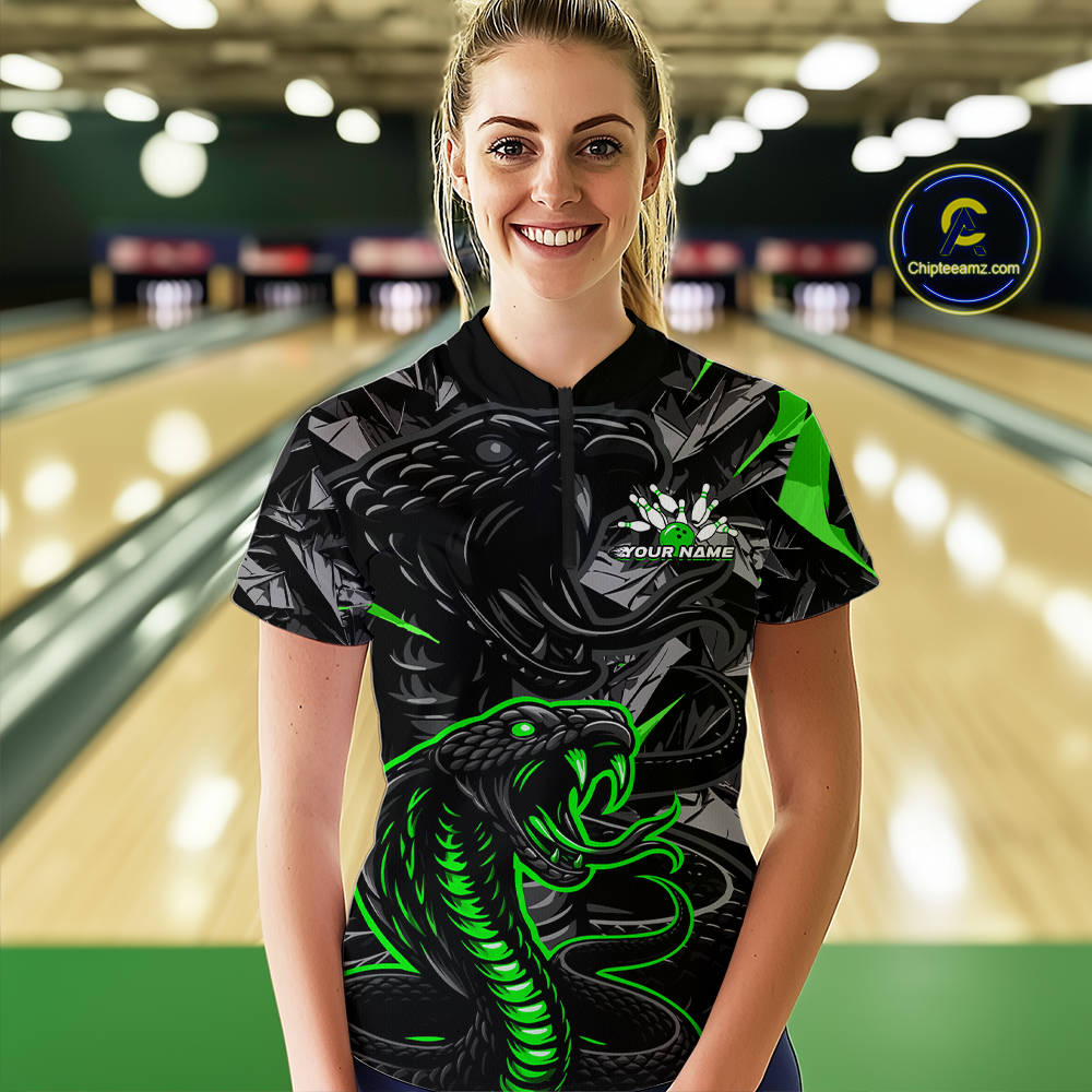 Custom Green Cobra Snake Bowling Jersey for Women Bowling Team Shirts Polo & 1/4 Zip HNT137