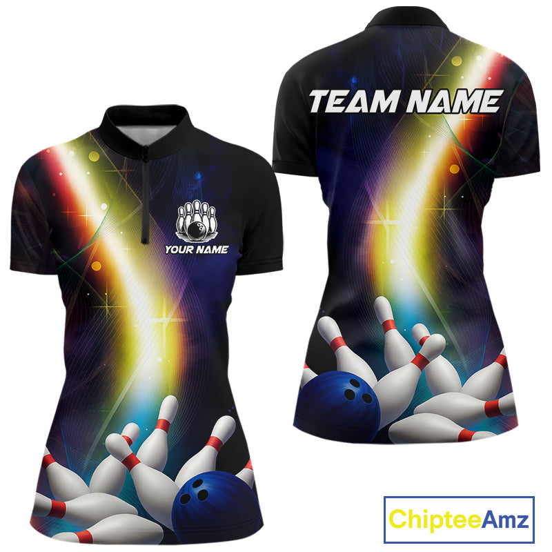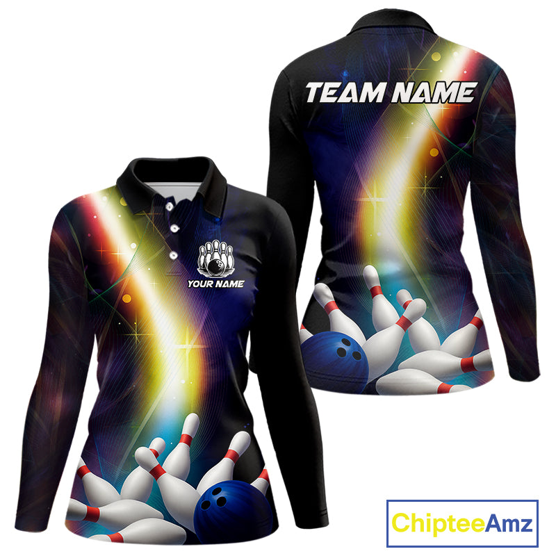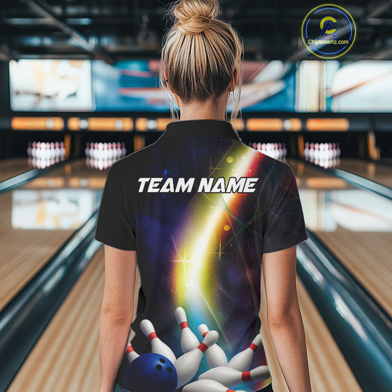 Custom Rainbow Lights Bowling Shirts For Women, Personalized bowling team jersey with name NQS10283