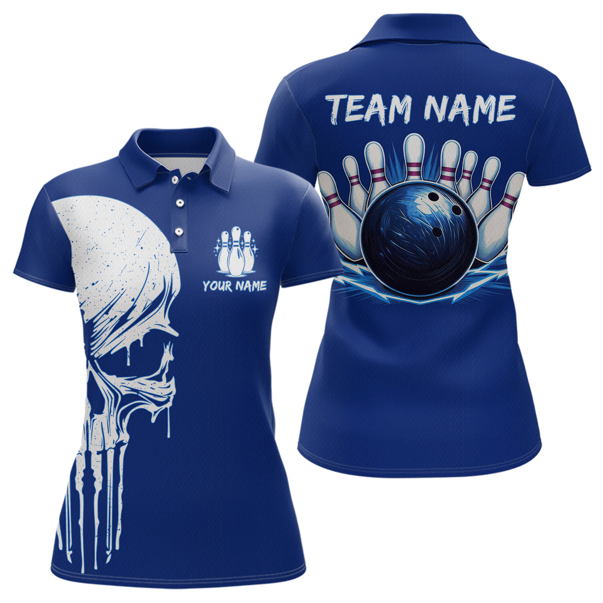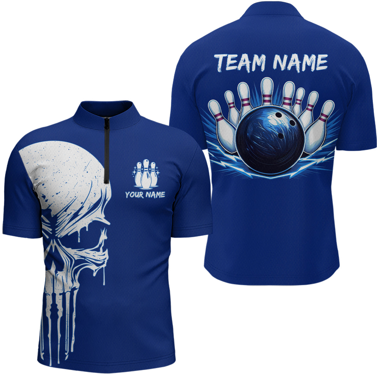 Custom Skull Bowling Shirt Blue Bowling Jersey for Men Women Team Polo&1/4 Zip MBL58