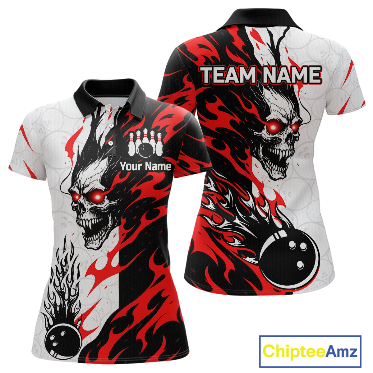 Custom Skull Bowling Shirts for Men Women Team Bowling Polo & Quarter Zip Shirts MBL148