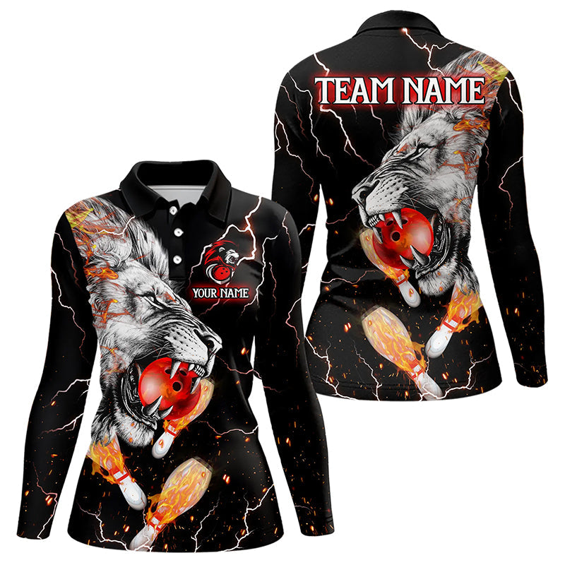 Flame Lion Bowling Lightning Thunder Custom Bowling Shirt For Women, Lion Bowling Team Shirt NQS9148