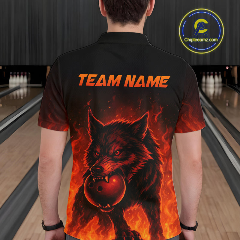Flame Wolf Bowling Shirts for Team Women Men Custom Wolf Bowling Polo & Quarter Zip MBL195