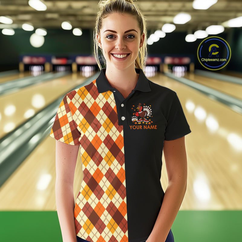 Funny Bowling Turkey Thanksgiving Women Bowling Shirt argyle pattern Custom Team Bowling Jersey NQS10848