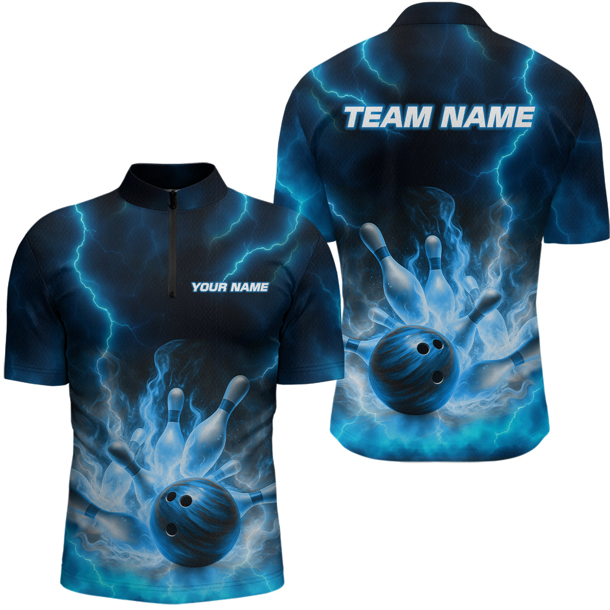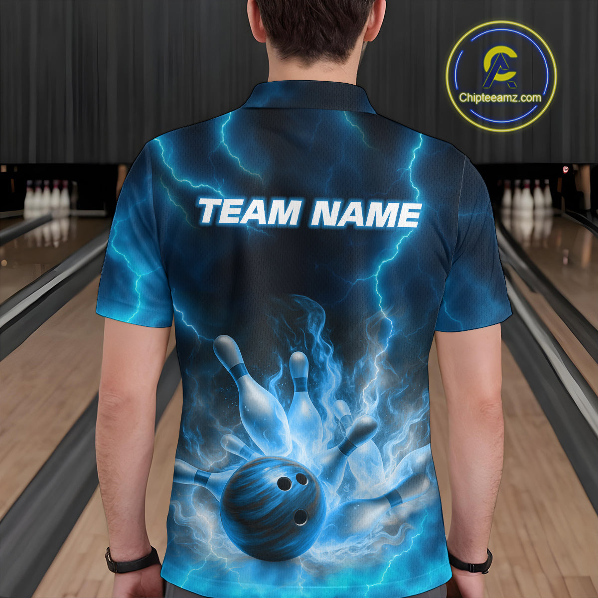 Lightning Blue Bowling Shirts for Women Men Custom Team Bowling Polo & Quarter Zip MBL131