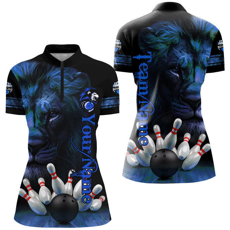 Lion Bowling Polo, Quarter Zip Shirt For Women Custom Bowling League Shirt Team Jerseys Outfit | Blue NQS8860