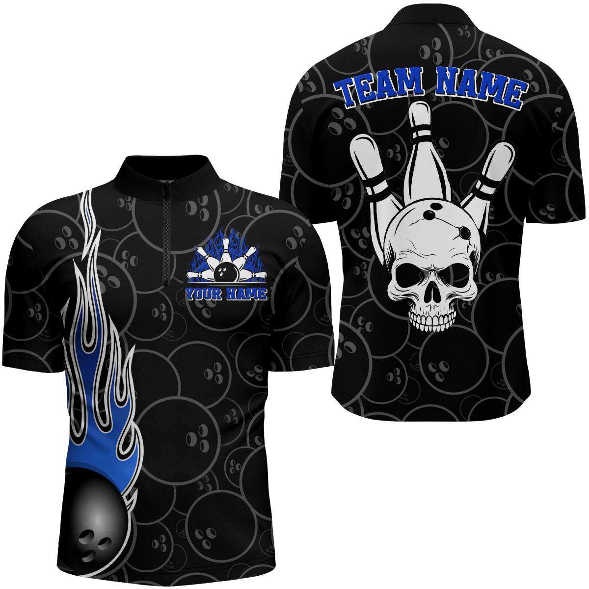Men Skull Bowling Jersey Custom Bowling Team Shirts Unisex Bowling Men Short Sleeve Quarter-zip Shirt CP30