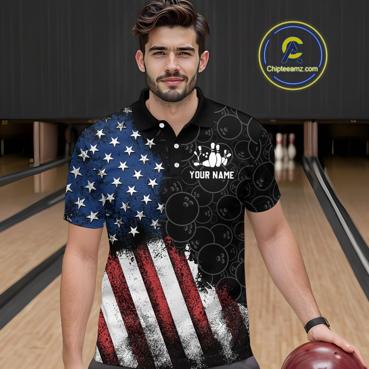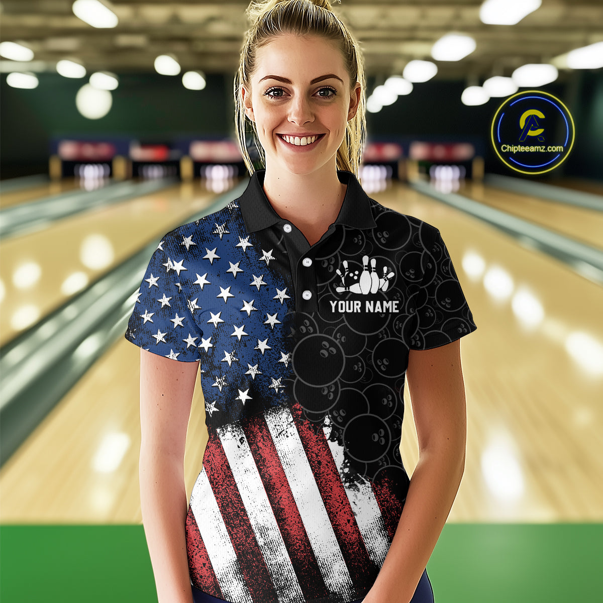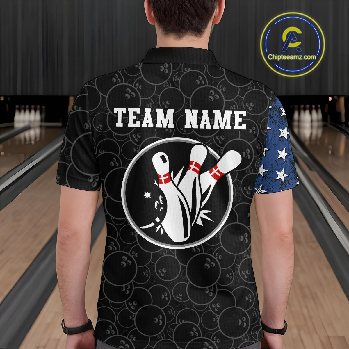Personalized American Bowling Shirt Polo Bowling Jersey Patriotic Bowling Outfit QZT684