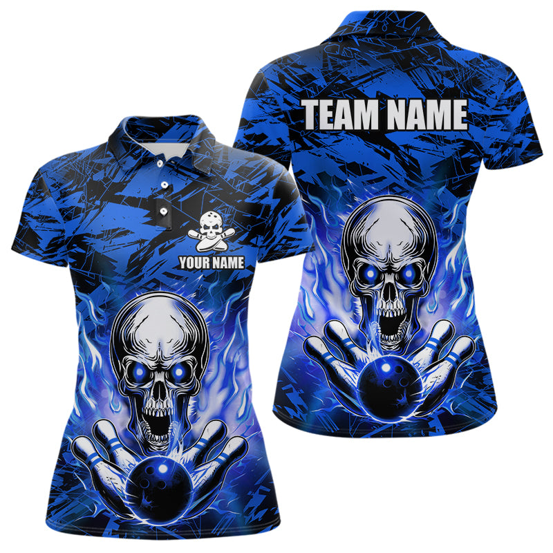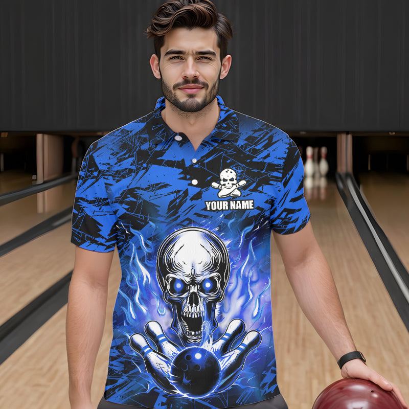Personalized Blue Flame Skull Bowling Jersey Camo Polo Bowling Team Shirt QZT670