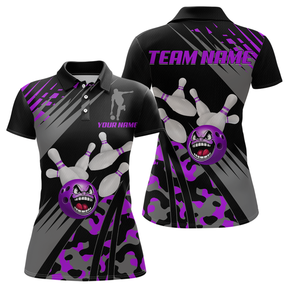 Personalized Purple Crazy Bowling Shirt Polo Bowling Jersey Bowling Outfit QZT609