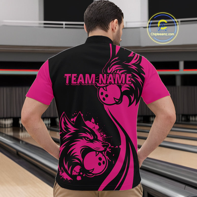 Pink Wolf Bowling Shirts for Team Men Women Custom Wolf Bowling Jerseys for Couples MBL197