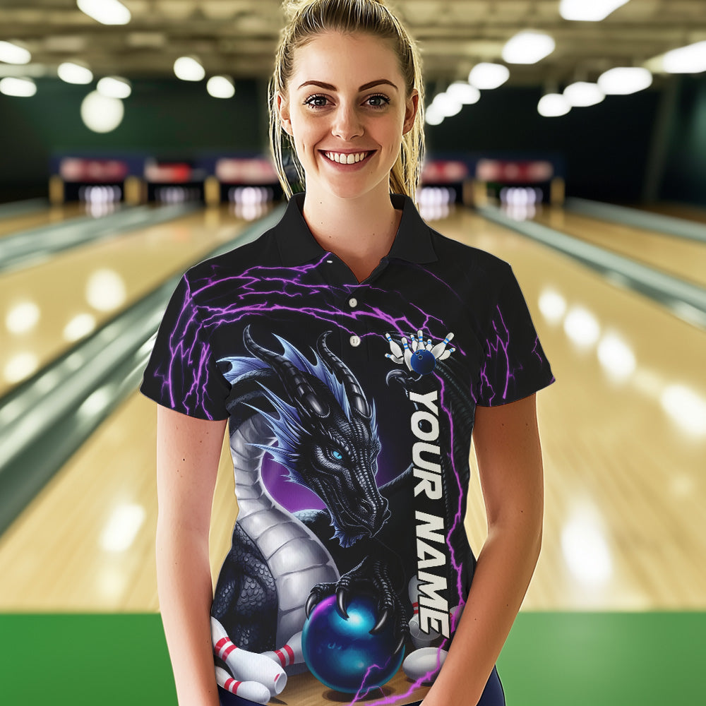 Blue And Purple Thunder Lightning Custom Dragon Bowling Team Polo Shirts For Women IPHW8317