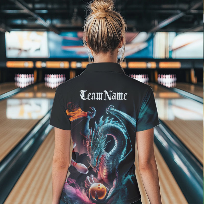 Blue Smoke Custom Dragon Bowling Team Polo Shirt For Women, Dragon Bowling Tournament Shirt IPHW8322