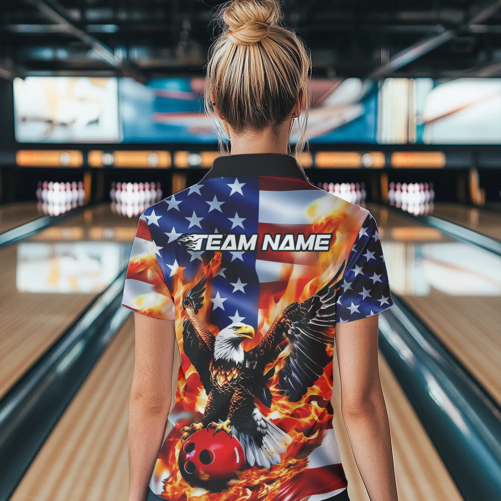 Custom USA Eagle Bowling Polo Shirts For Women, Patriotic Bowling League Shirt IPHW8451