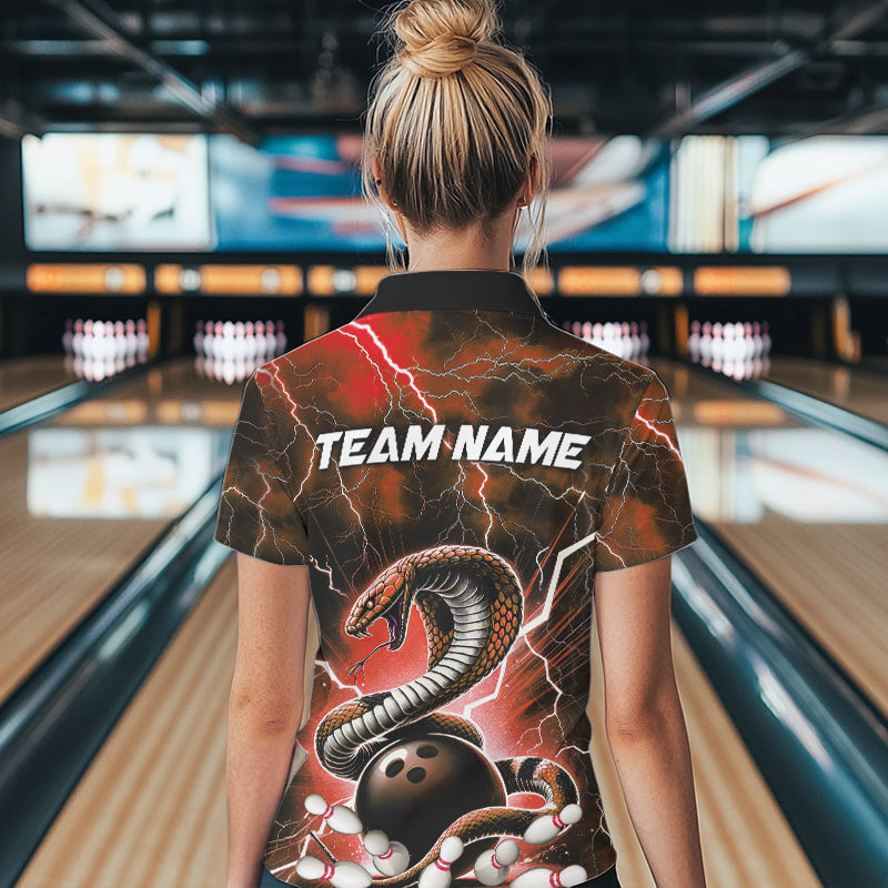 Orange Thunder Lightning Custom Cobra Snake Bowling Women Polo Shirts, Bowling Team Shirt IPHW8897