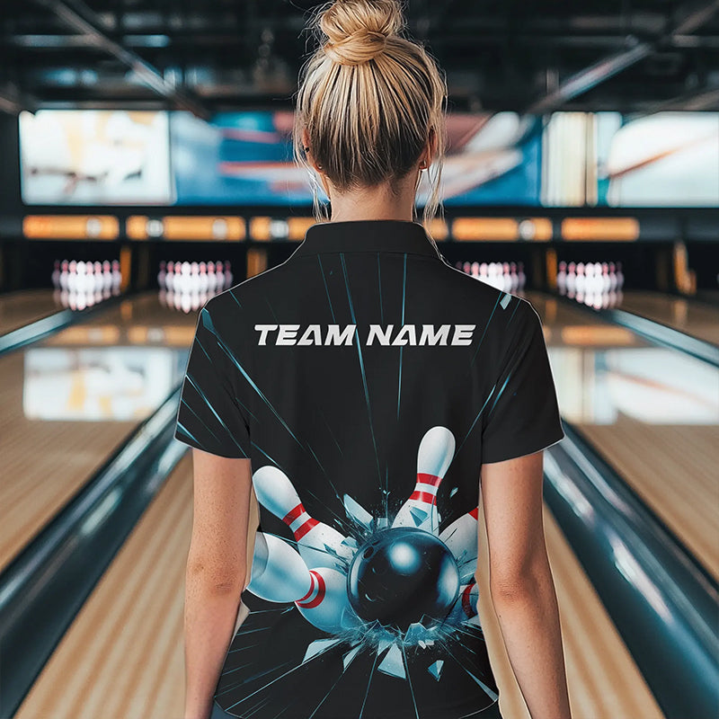 Custom Break Glass Bowling Polo Shirts For Women, Bowling League Shirt Team Uniform IPHW8900