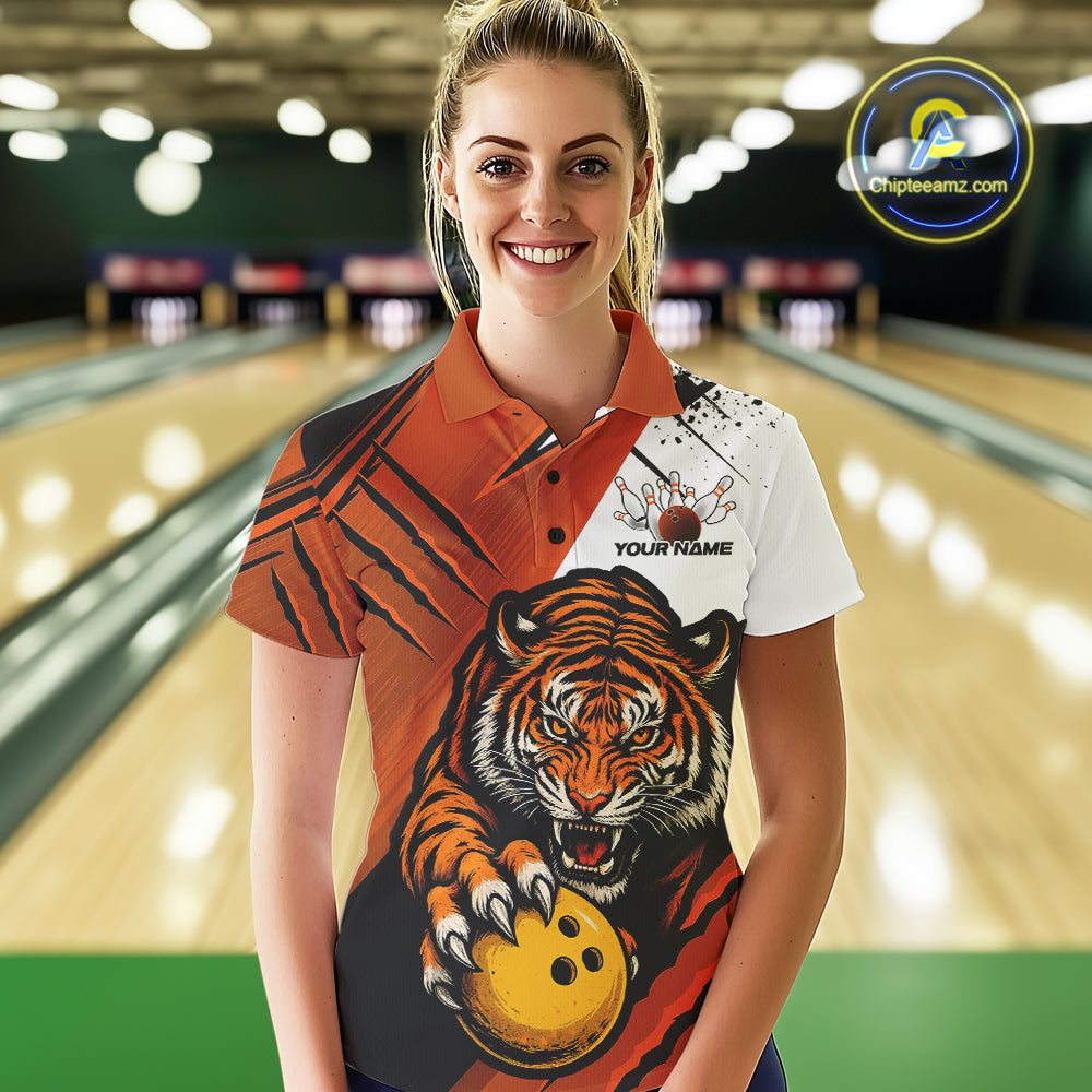 Custom Tiger Bowling Team Polo Shirts For Women, Tiger Claw Bowling Jerseys IPHW9026