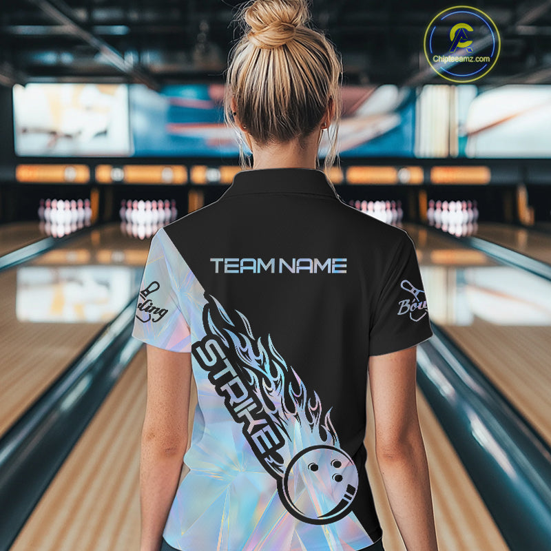 Custom Hologram Flame Strike Bowling Women Polo Shirt, Icy Crystal Bowling Shirt IPHW9862