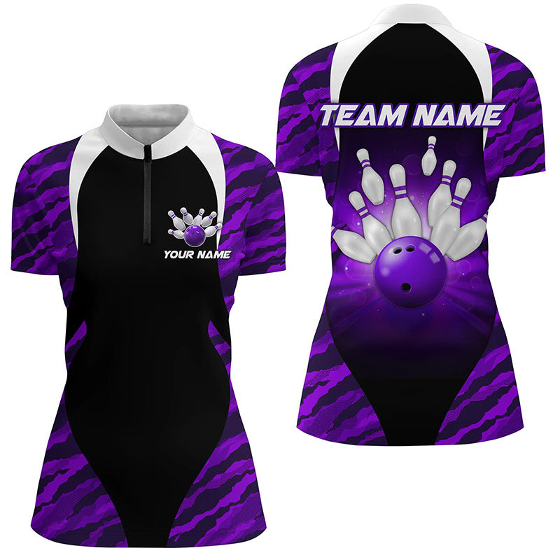 Purple Camo Bowling Shirts Men Women Bowling Jersey Unisex Custom 1/4 Zip Bowling Team Shirt BDT597