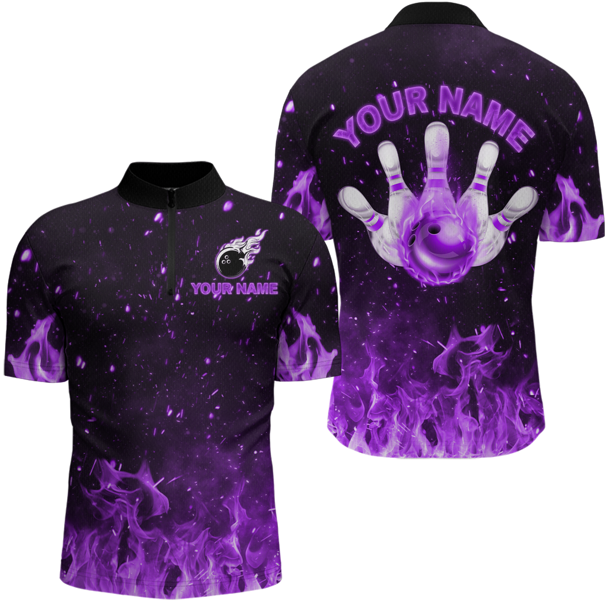 Purple Flame Bowling Jersey Men And Women Custom Bowling Shirts Unisex Polo Bowling Team Shirt CP21