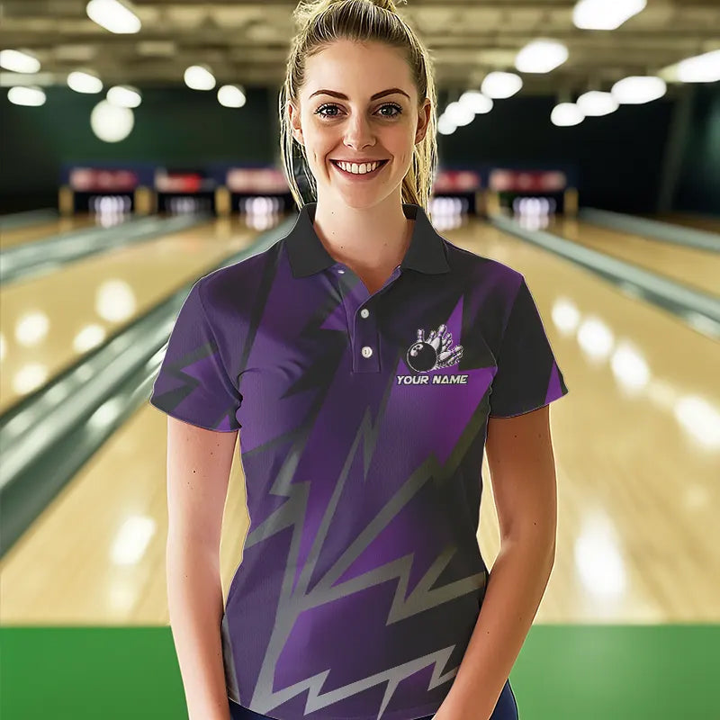 Purple Lightning Thunder Storm Team bowling shirts for women custom bowling Polo, Quarter zip jerseys NQS9625