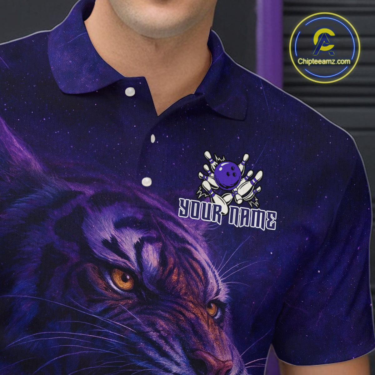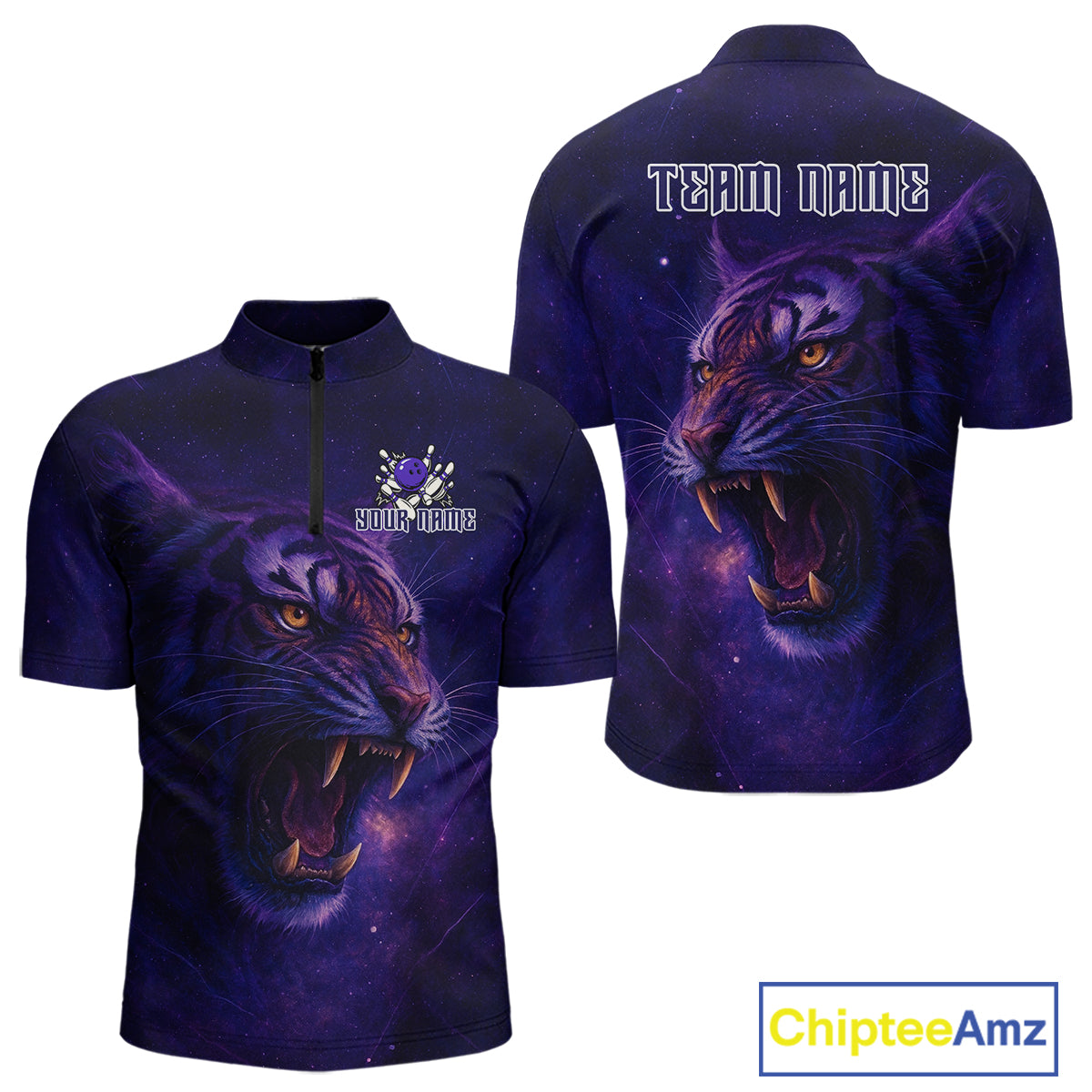 Purple Tiger Bowling Shirts for Team Men Women Custom Bowling Jersey Polo & 1/4 Zip Shirt MBL189