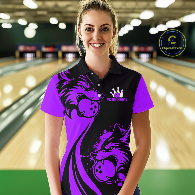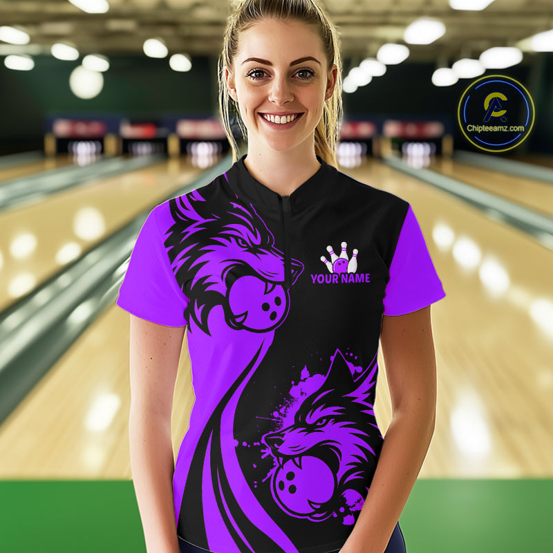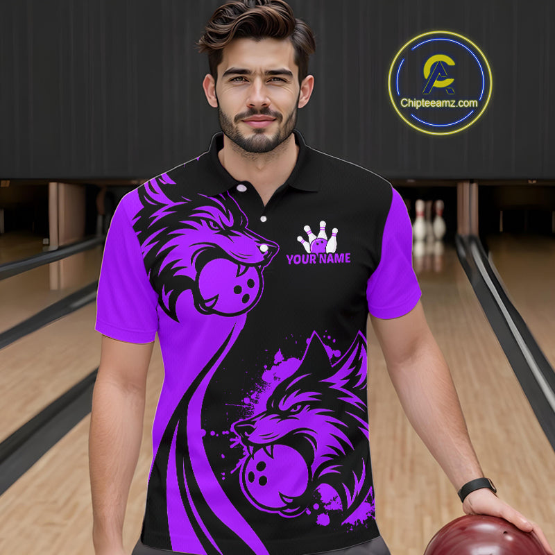Purple Wolf Bowling Shirts for Team Men Women Custom Wolf Bowling Jerseys for Couples MBL197