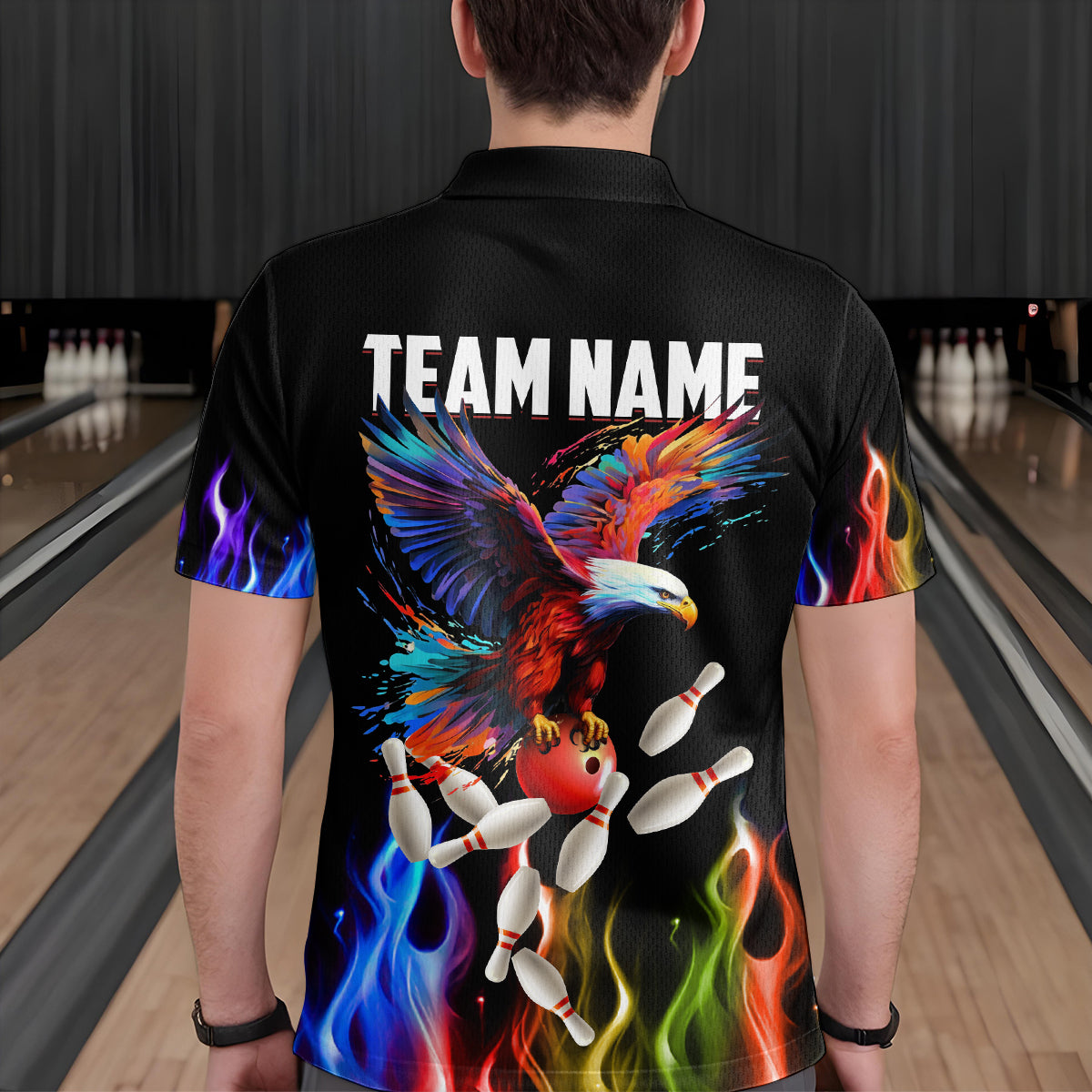 Rainbow Flame Eagle Bowling Team Jersey Personalized Bowling Polo Shirt For Men And Women QZT681