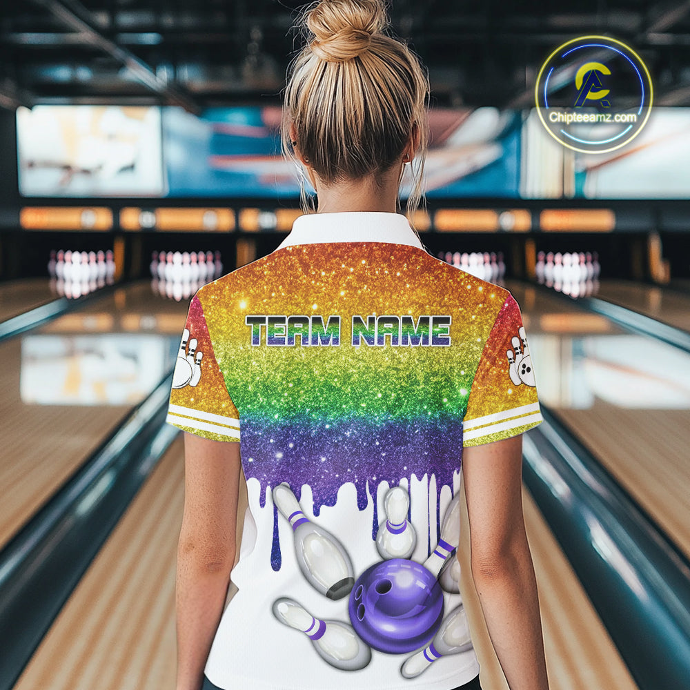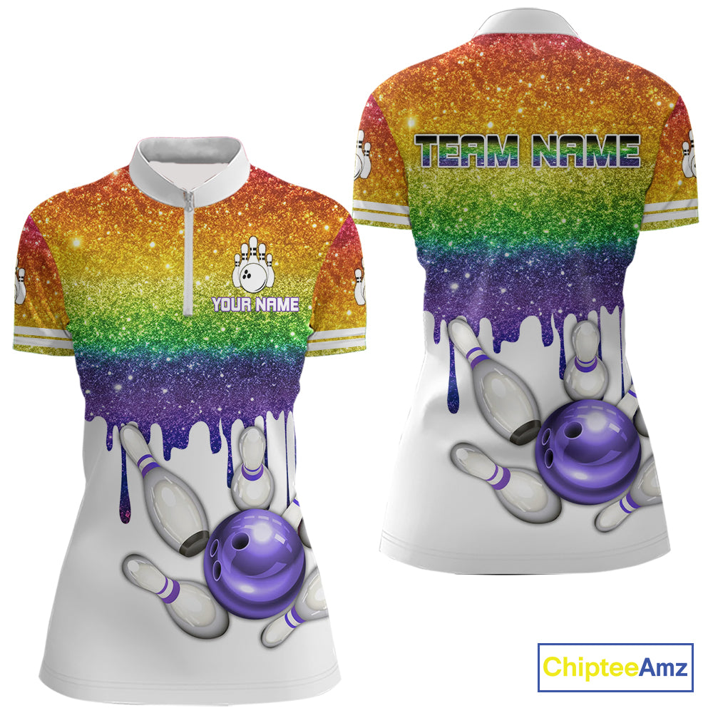 Rainbow glitter Bowling Shirts For Women Custom team bowling jerseys, Personalized bowling uniform NQS10815