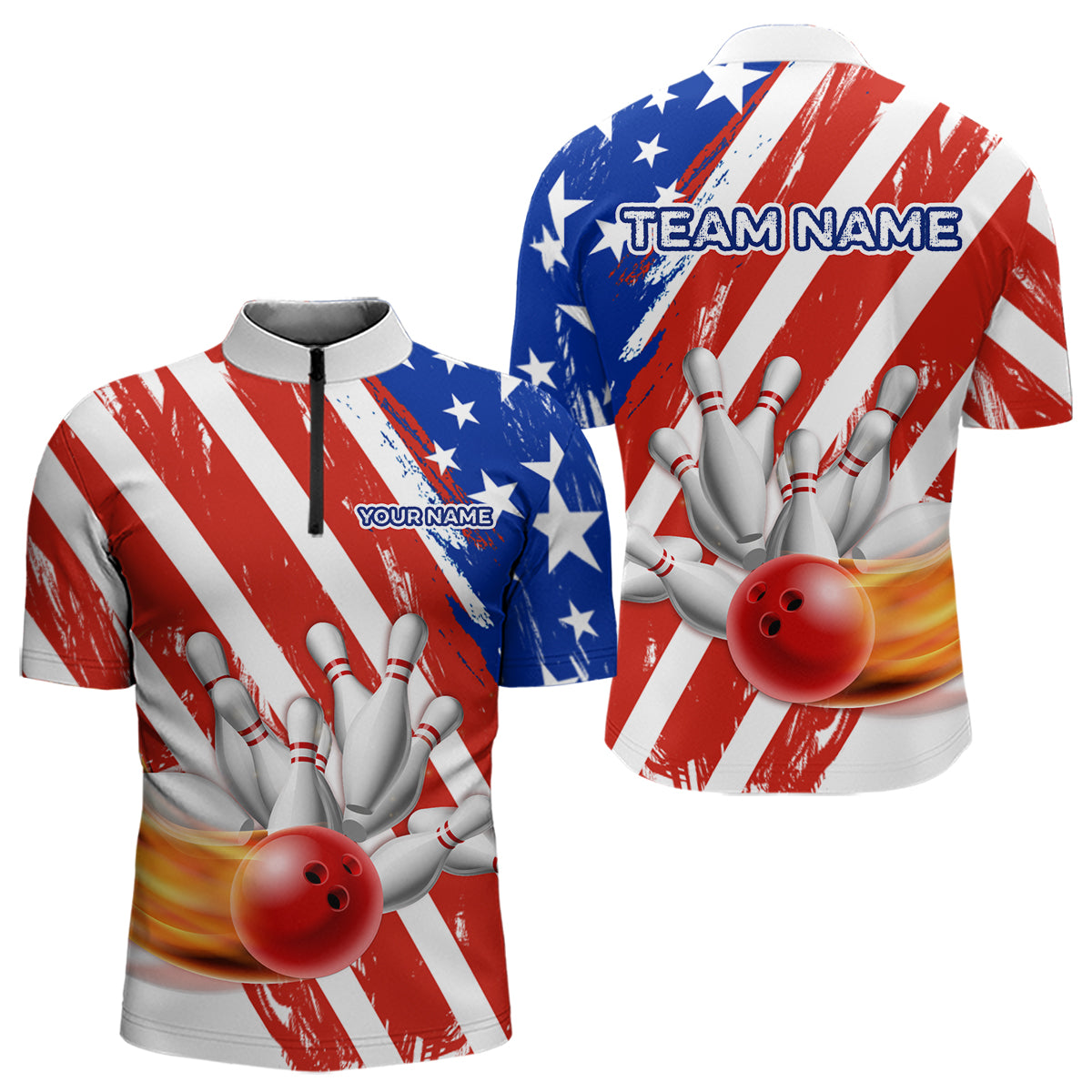 US Patriotic Bowling Shirts for Men Women Team Custom Bowling Polo & Quarter Zip MBL111