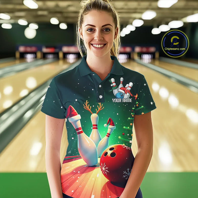 Custom Christmas Ladies Bowling Shirts, Bowling Team Shirt Christmas Bowling Outfits IPHW7841