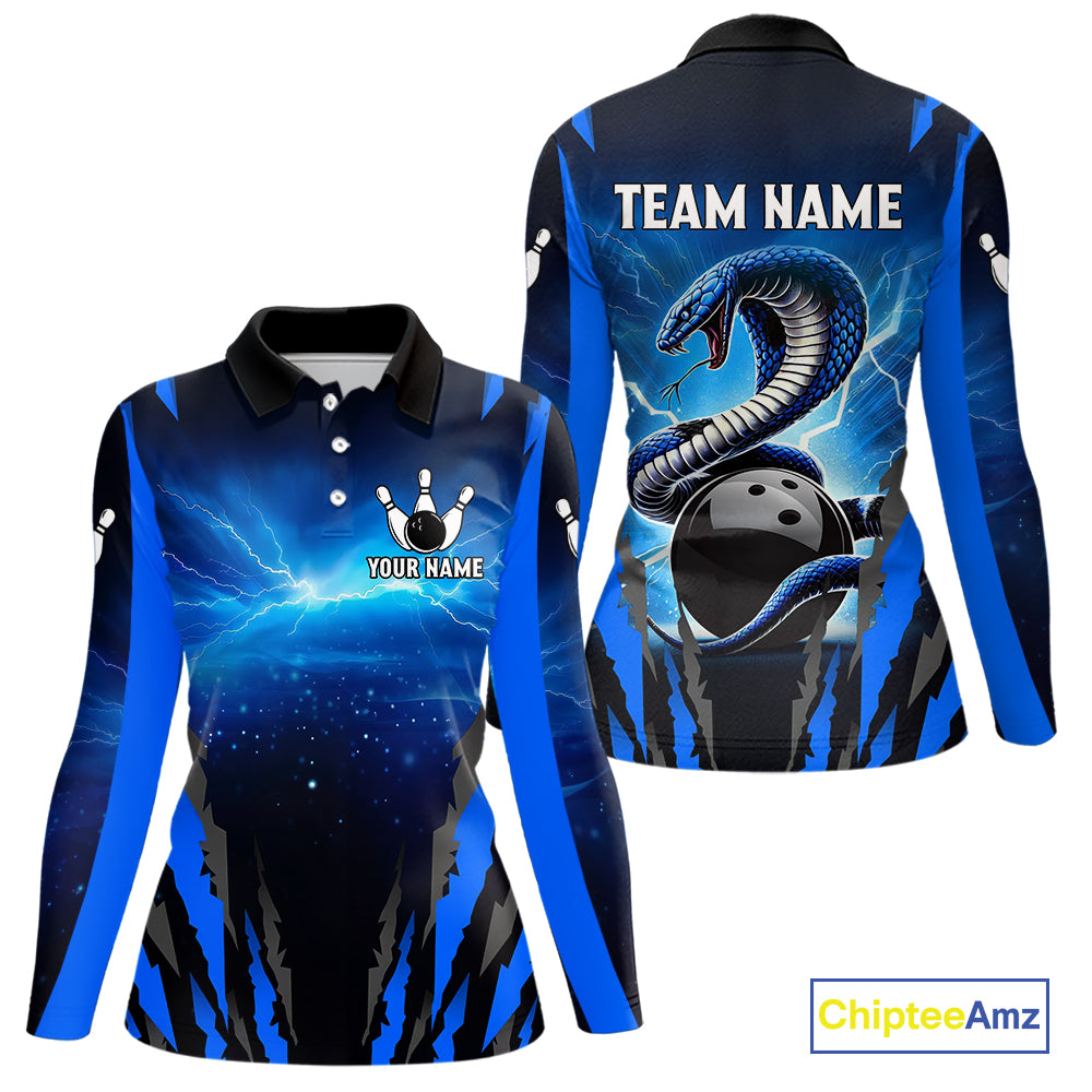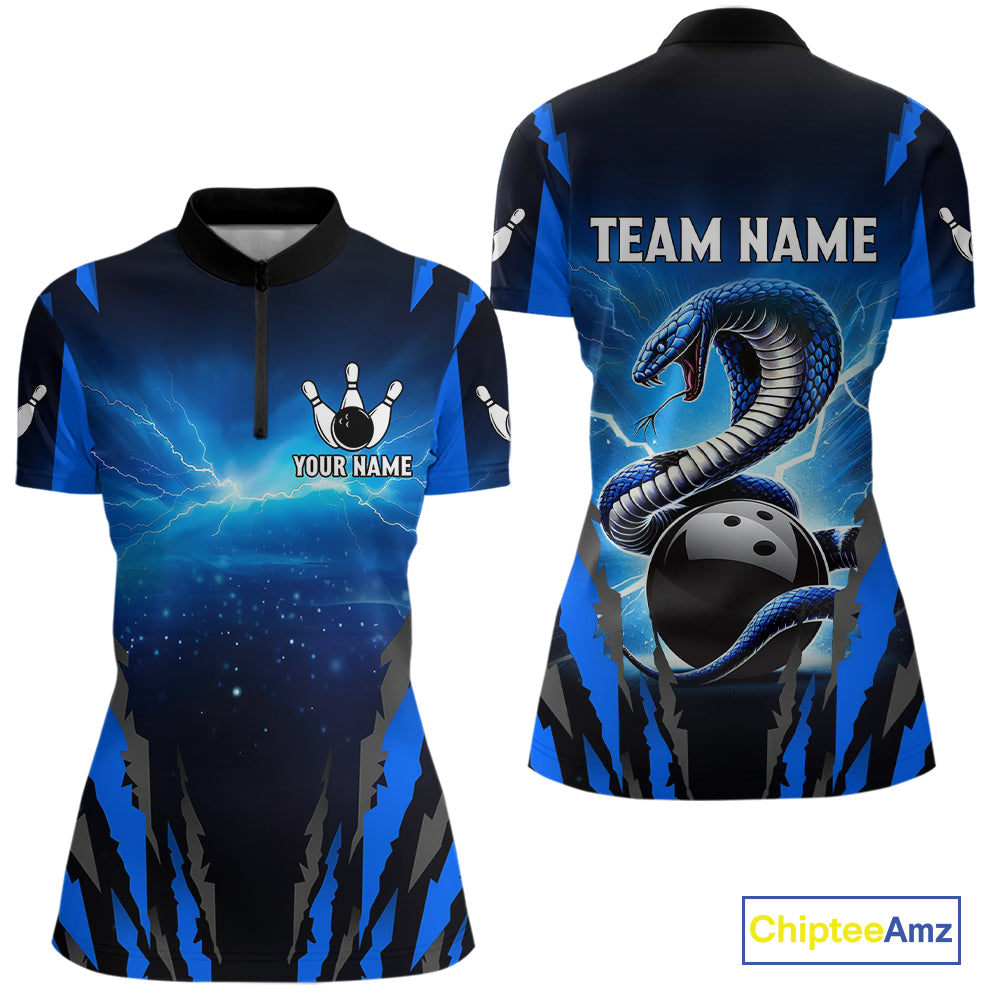 Personalized Blue Thunder Lightning Cobra Snake Bowling Shirts For Women, Bowling Team Jersey TDM4643