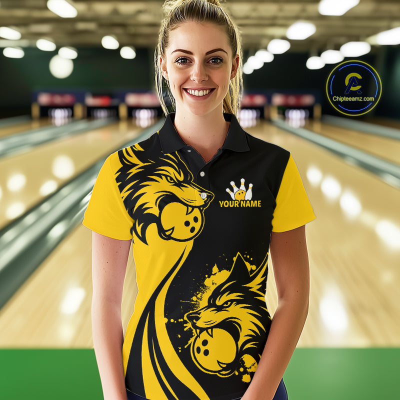 Yellow Wolf Bowling Shirts for Team Men Women Custom Wolf Bowling Jerseys for Couples MBL197