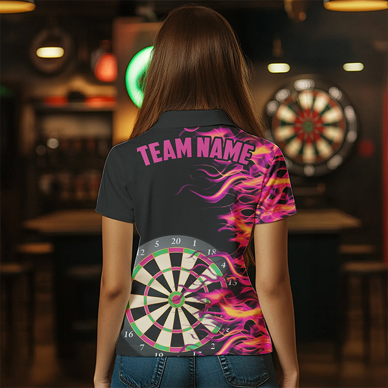 Pink Fire Flame Dart Board 3D Printed Men Darts Polo Shirts Custom Team Name Darts Jerseys Uniform TDM1294