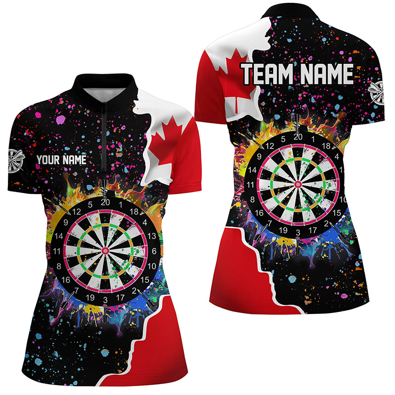 Grunge Colorful Darts Board Canada Flag Darts Shirts For Women Custom Patriotic Darts Team Jerseys TDM1682