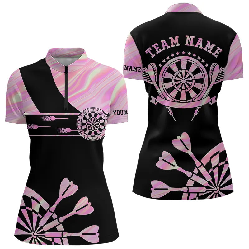 Holographic Pink Darts Tie Dye Polo & Quarter Zip Custom Dart Shirts For Women Glowing Dart Jerseys TDM3624