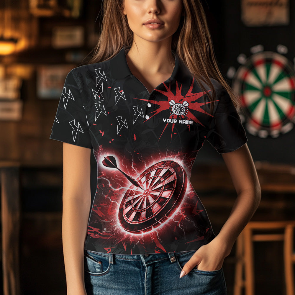 Custom Dart Jerseys For Women, Black And Red Dartboard Thunder Lightning Darts Shirts Polo & 1/4 Zip TDM3666