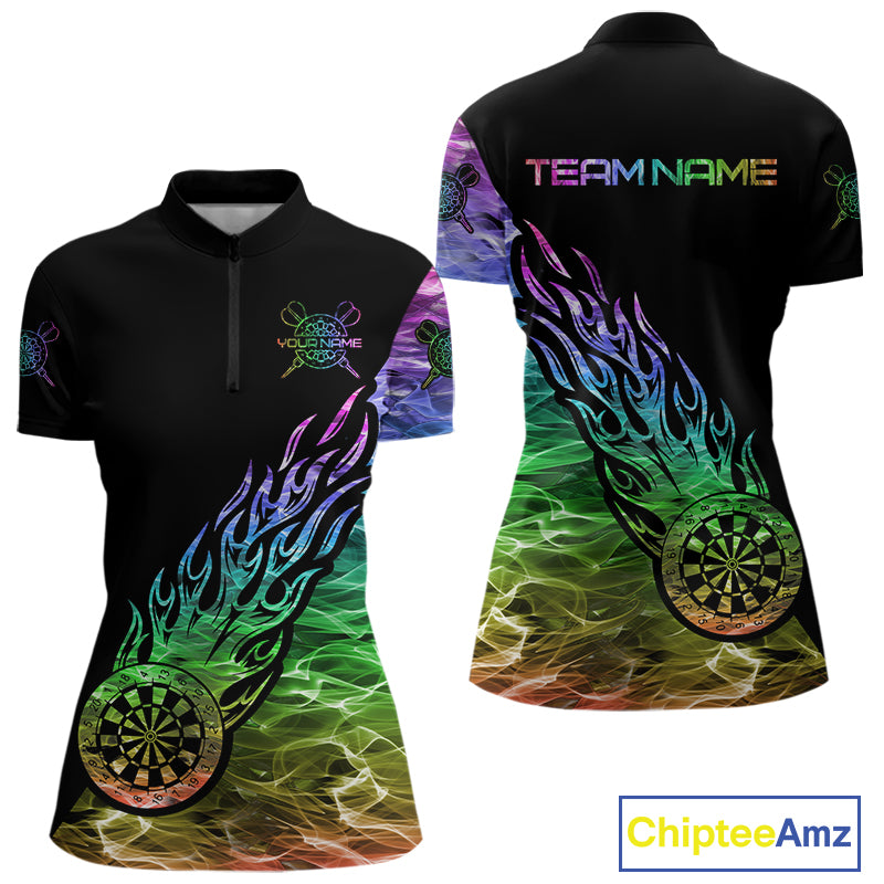 Colorful Rainbow Fire Flame Darts Polo & Quarter Zip Custom Dart Shirt For Women Dart Jerseys TDM3995