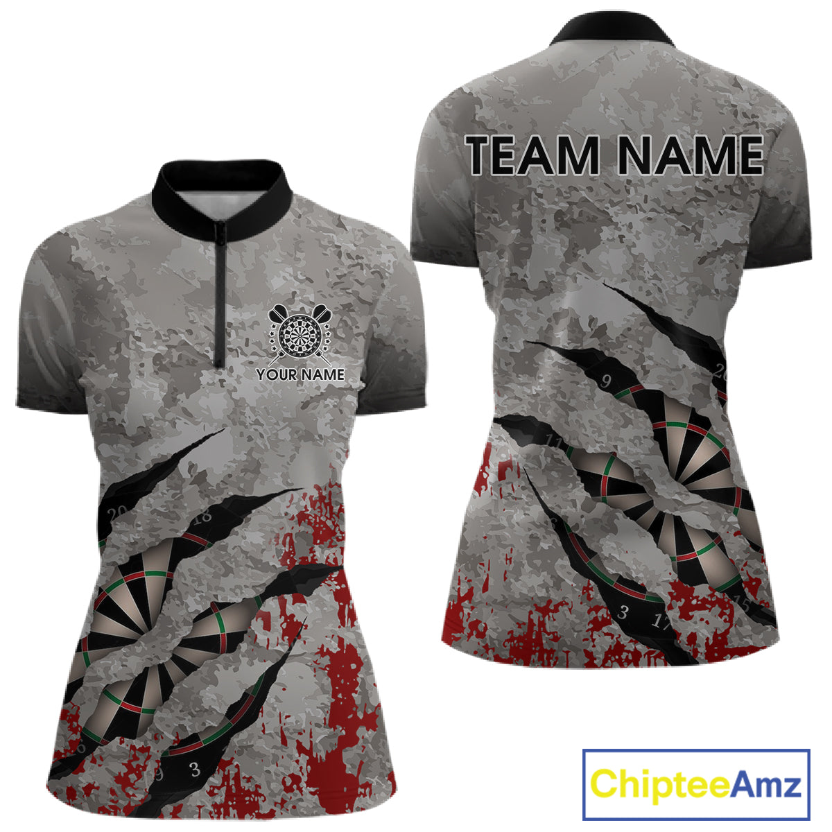 Custom Red And Grey Grunge Darts Shirt For Women, Personalized Darts Jersey Team Polo & 1/4 Zip TDM4995