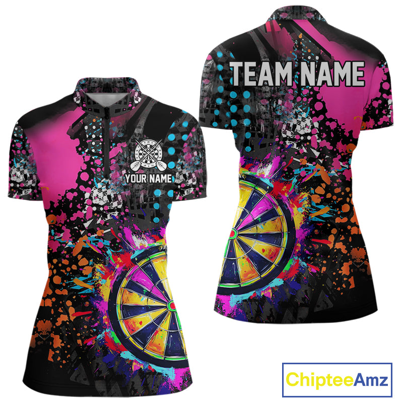 Personalized Colorful Grunge Funny Darts Shirt For Women Custom Darts Jersey Team Polo & 1/4 Zip TDM5068