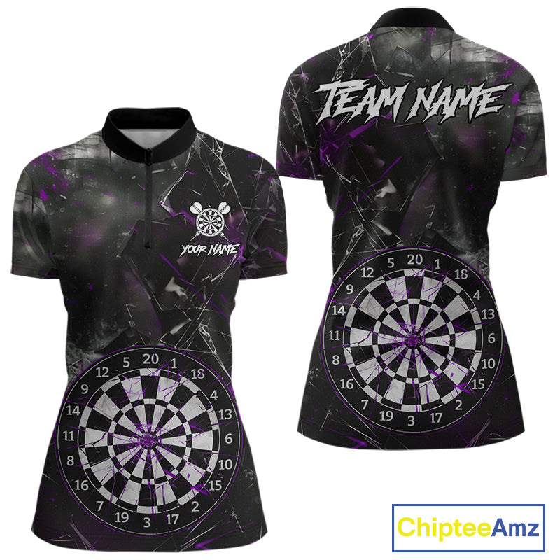 Personalized Purple Break Glass Darts Shirt For Women Custom Darts Team Jersey Polo & 1/4 Zip TDM5101
